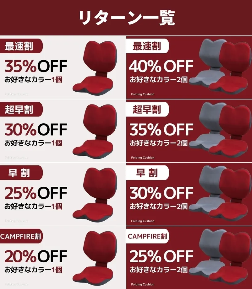 2023/02/27 11:27プロジェクトは、もうすぐ終了です ! 座り心地の良さをこの機会にご体感頂けたら幸いです。様々な物が値上がりしている中、新生活に向けてCampfireのみの特別価格。出来るだけ早くお届けできるよう、準備しておりますのでどうぞお見逃しくなく!! もっと見る