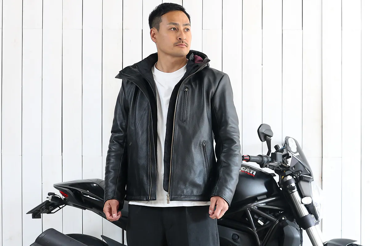 【どんな天候でもおしゃれにバイクに乗れる。防水レザーフードジャケット!】