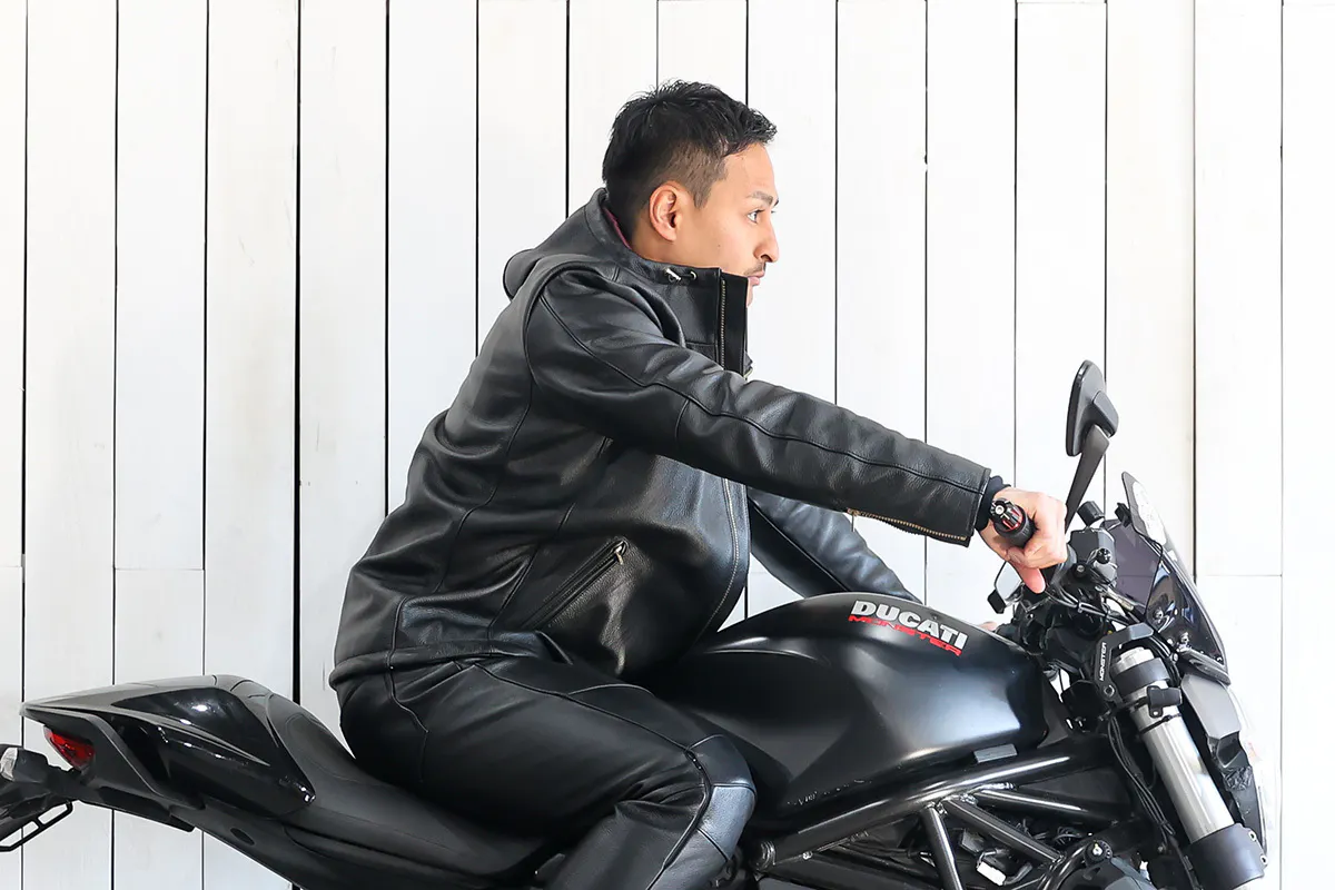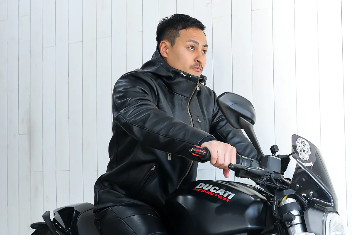 Darkのレザージャケットは「機能性×デザイン」の両立を追求。重厚感がありつつもユーロなスタイルをリスペクト。スタイリッシュを目指しました。