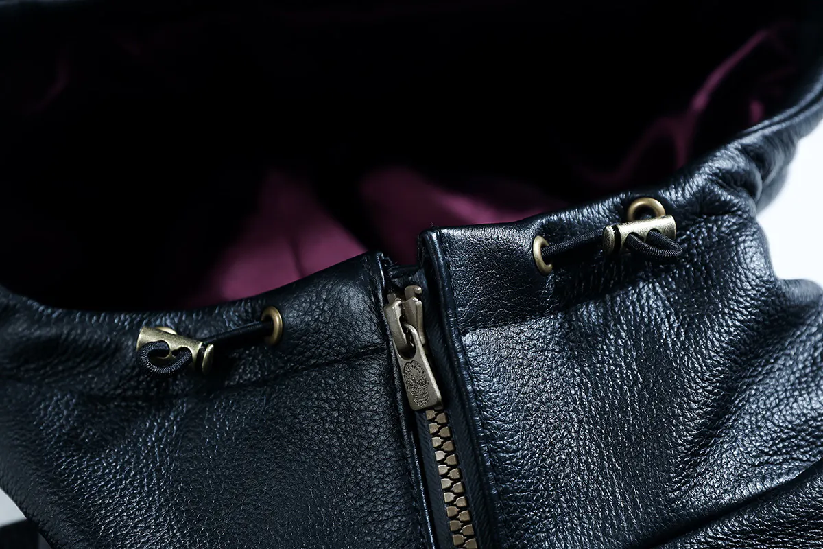 特徴③:防水施策複数個 - フード・防水レザー・撥水ジッパー