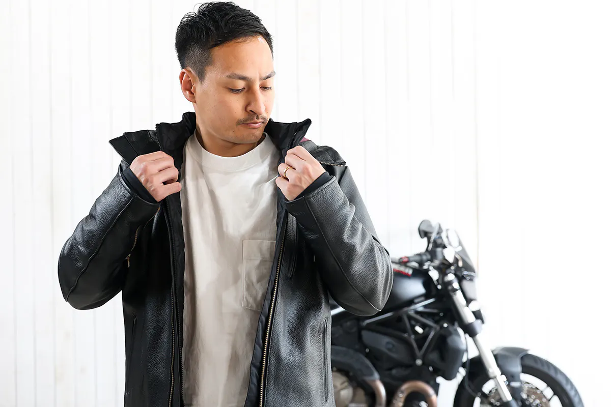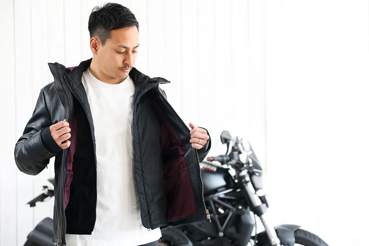 バイカーの皆様なら愛用されている方も多いレザージャケットですが、その中にもいくつかの課題感があります。例えば、寒い冬や悪天候の際は使いづらかったり、異様にゴツゴツする服が多いなど。