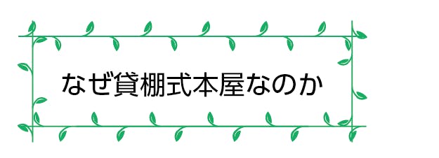 この貸棚式をメインとする書店は、近年、東京を中心に増えており、シェア型書店や共同書店などとも呼ばれています。関西では奈良・滋賀・兵庫・大阪、ほかに福岡、長野などにもあります。棚貸しではなく本持ち込みタイプ、閲覧のみの本も混ざった書店と図書室を兼ねるタイプなどもあります。