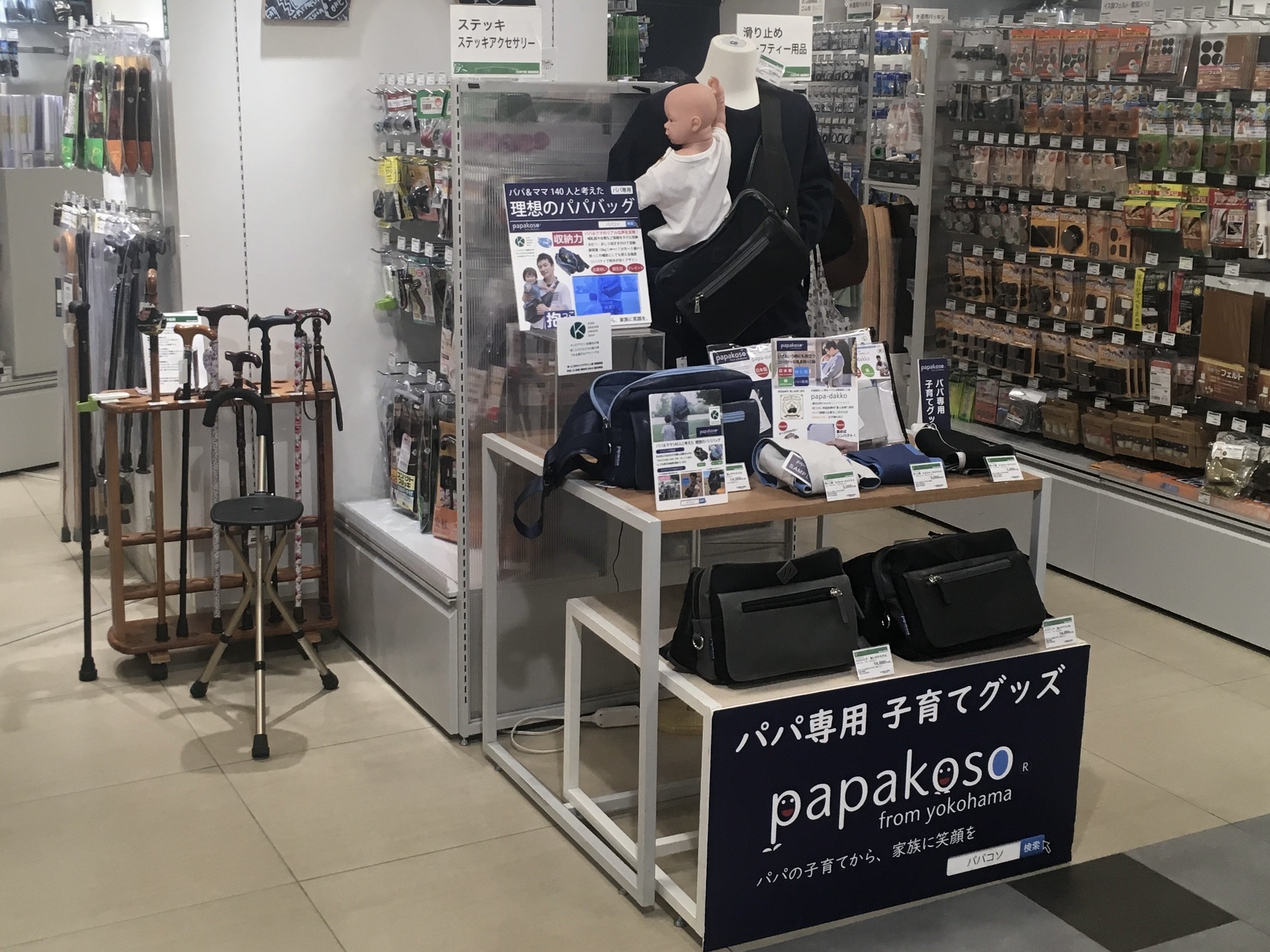 パパ&ママ140人と考えた理想のパパバッグの「思いやりモデル」は、東急ハンズ横浜店さんでお取り扱いいただいていますが、今後だっこモデル+も一般販売を開始する際には展開していただきたく、商品の紹介に行ってきました!