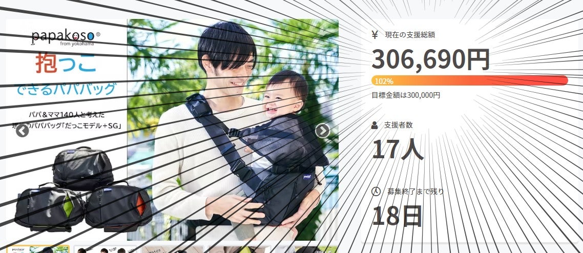 抱っこもできるパパバッグ「だっこモデル+SG」の先行申込は3/30まで続きます。