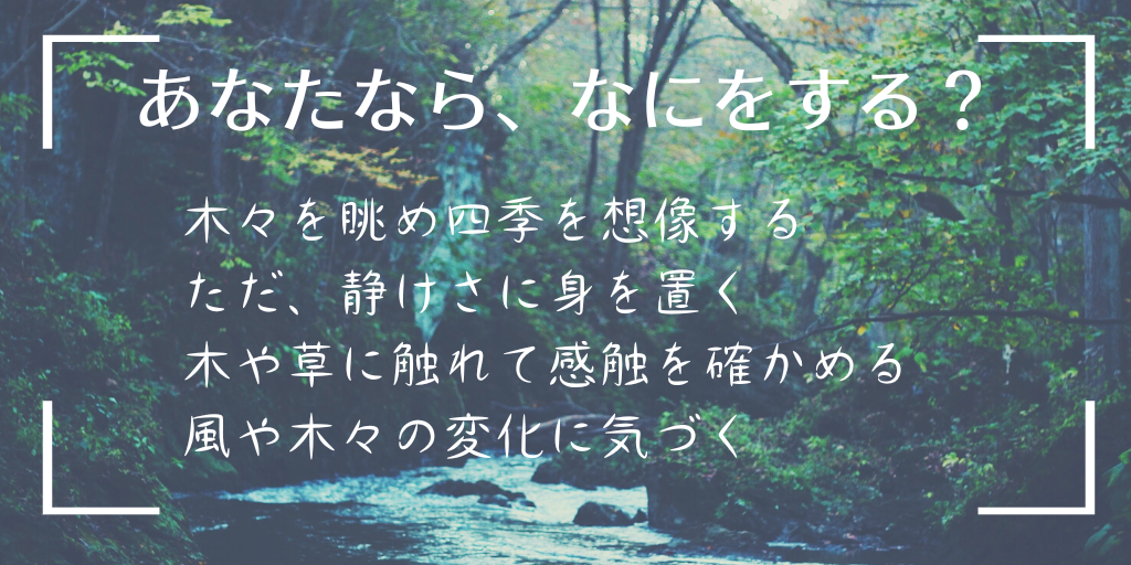 五感を使って、「不便な」自然を実感できる場にしたいと思っています。