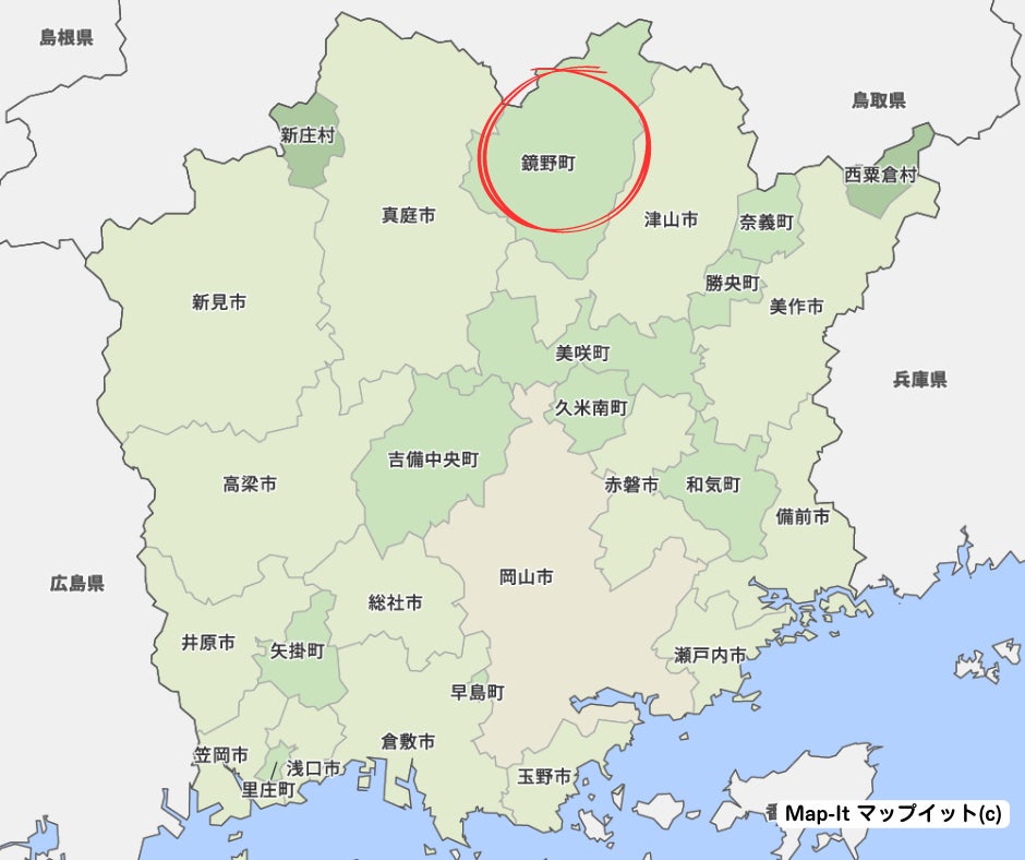 わたしたちが住む「岡山県鏡野町」は、岡山県の北、鳥取県との境に位置するまちです。