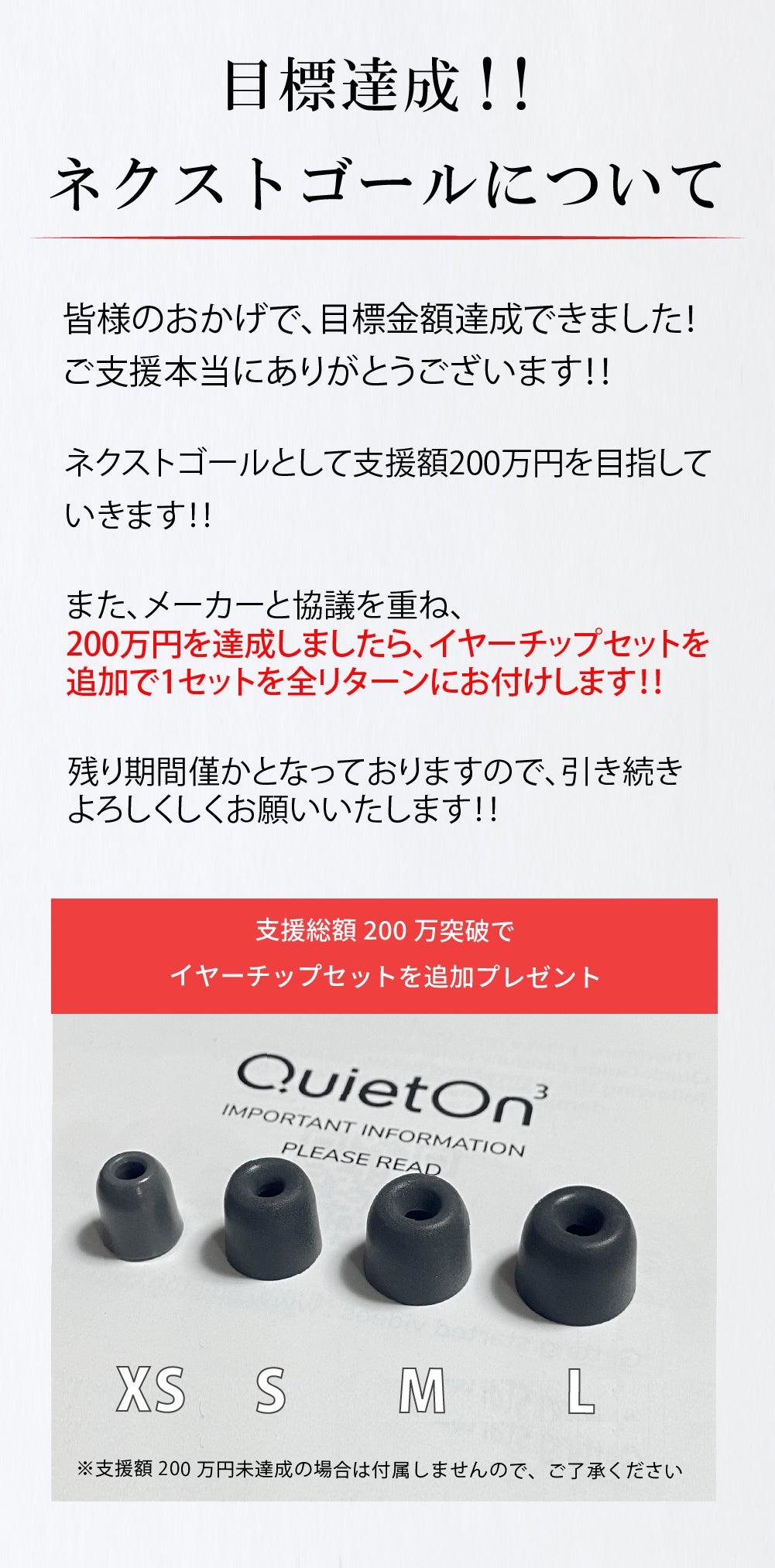 ※リターン品の配送が完了するまで、ウェザリー・ジャパン株式会社はQuietOnの日本における独占販売権を有する正規代理店です。