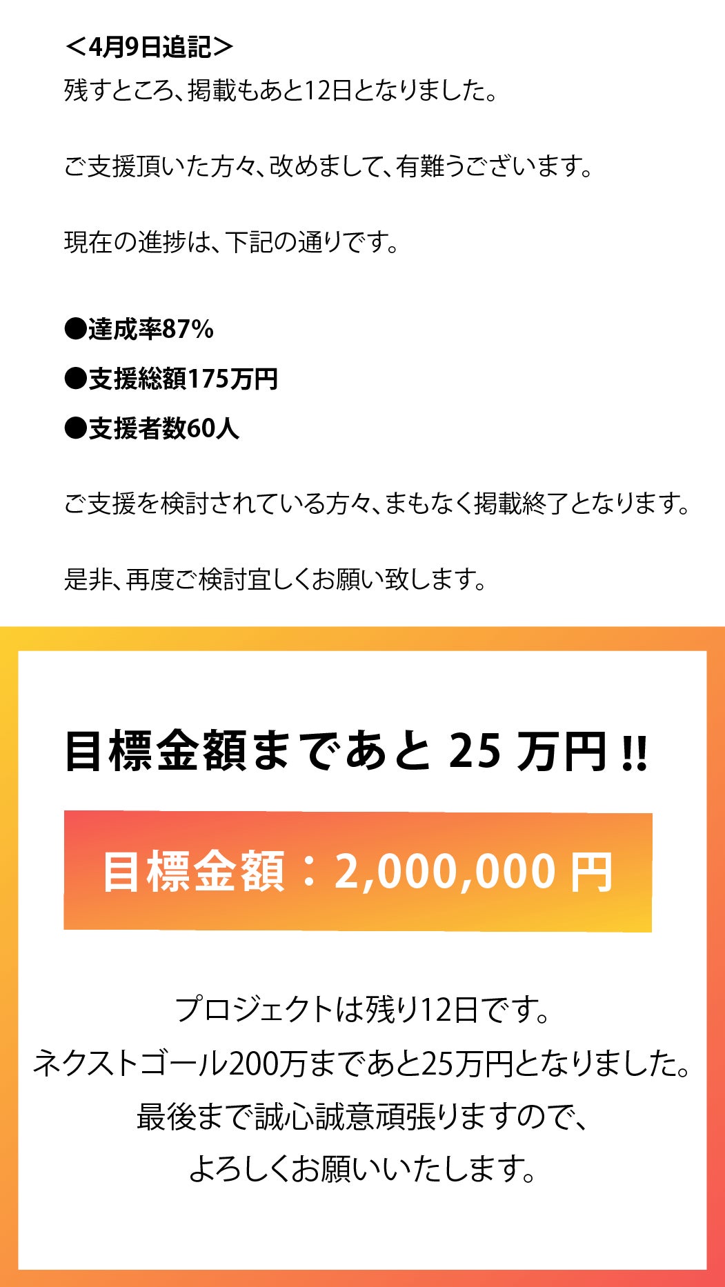 本文中に記載させていただいたスケジュールは、あくまでプロジェクト公開時点の予定です。