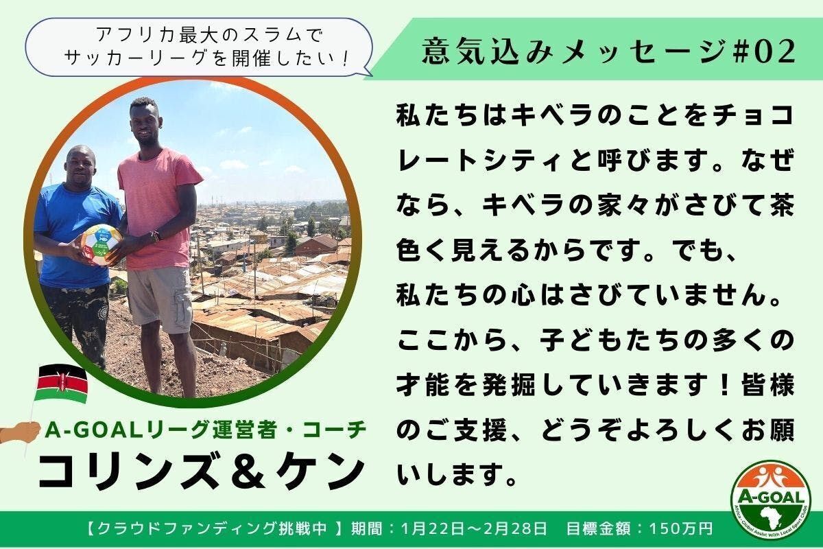 意気込みメッセージ第2弾は現地ケニアのキベラからケンとコリンズです。