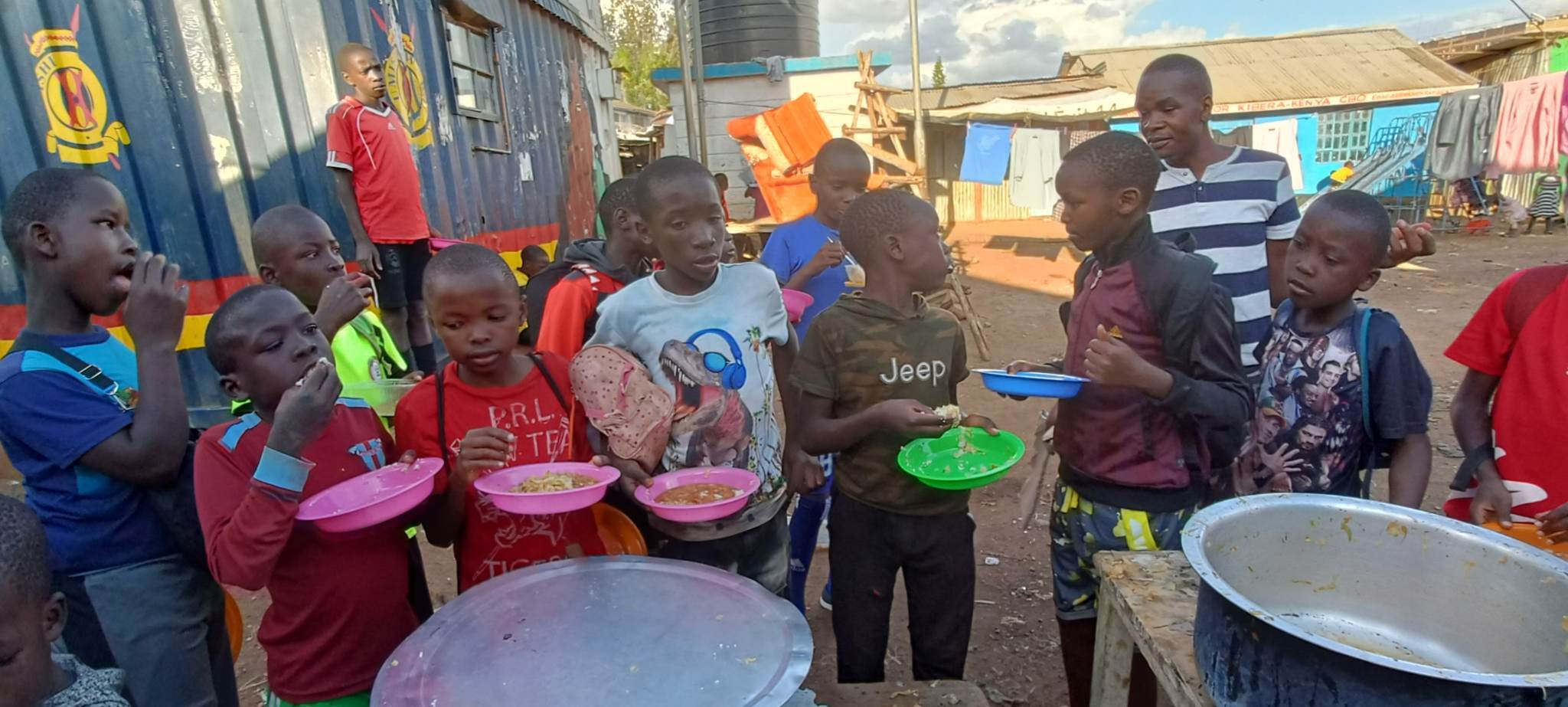 最初は13歳以下のチームの試合観戦。その後はスラム内にあるアガペ・ホープ・フォー・キベラの学校で食事を見学しました。