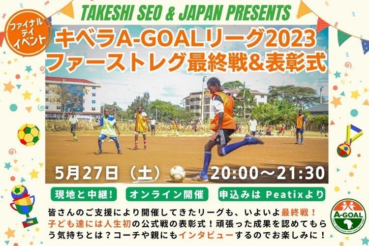 今年の3月から始まったTAKESHI SEO & JAPAN presents キベラA-GOALリーグ2023のファーストレグ。5月27日に最終日を迎えます。