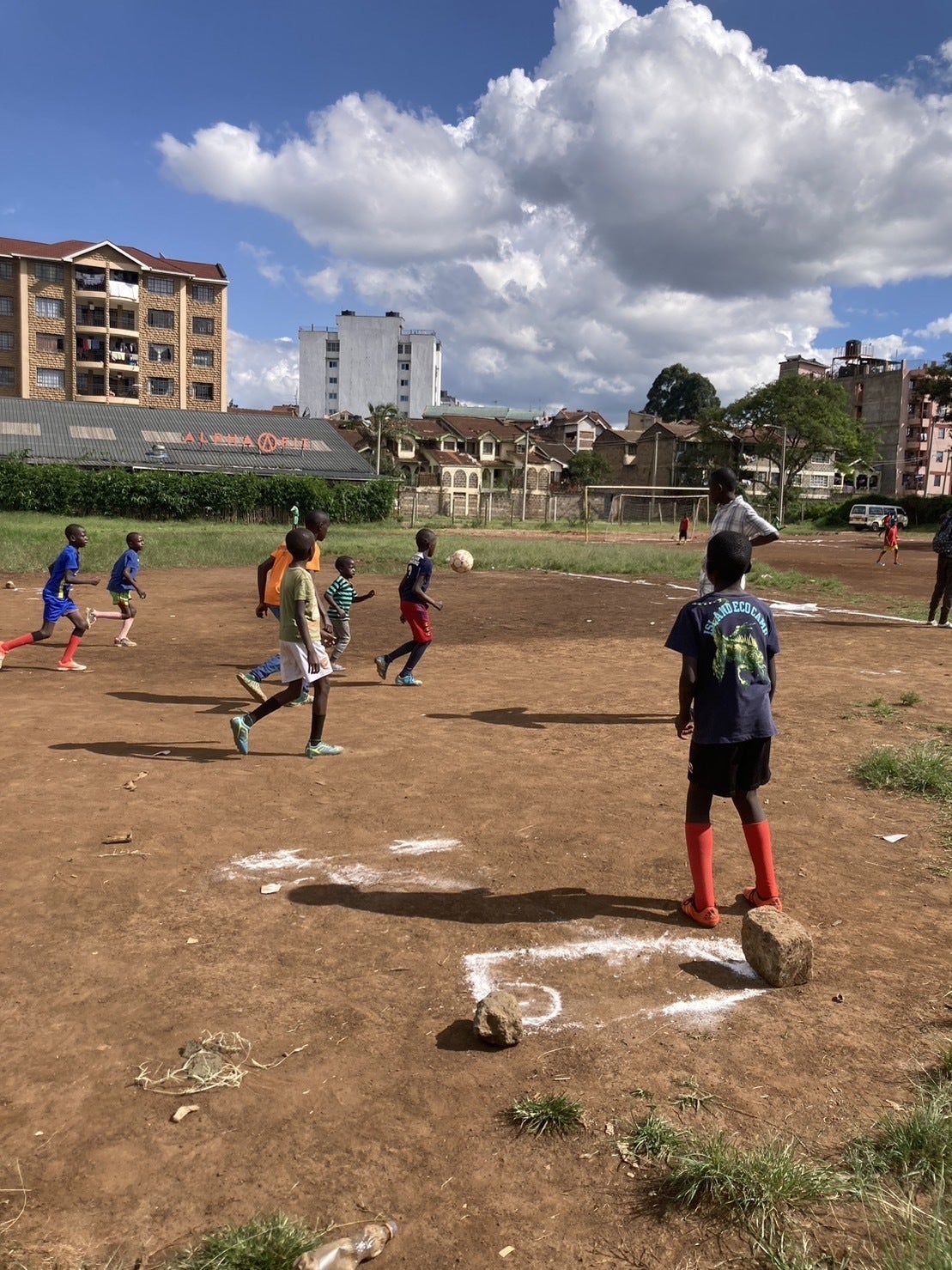 石の間をゴールに見立てているのですが、これまた小さいのです。おまけにコートの外なので子どもたちのひざくらいある雑草がたくさん生えています。しかし彼らはそんなことは気にも留めず、どんどん草の中に入っていってボールを蹴っていました。