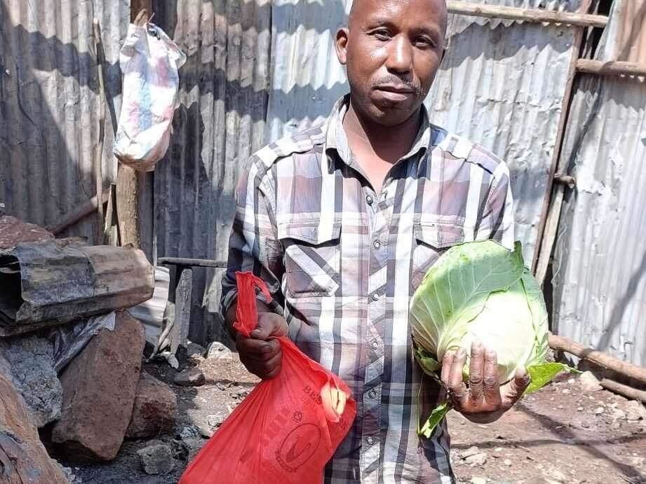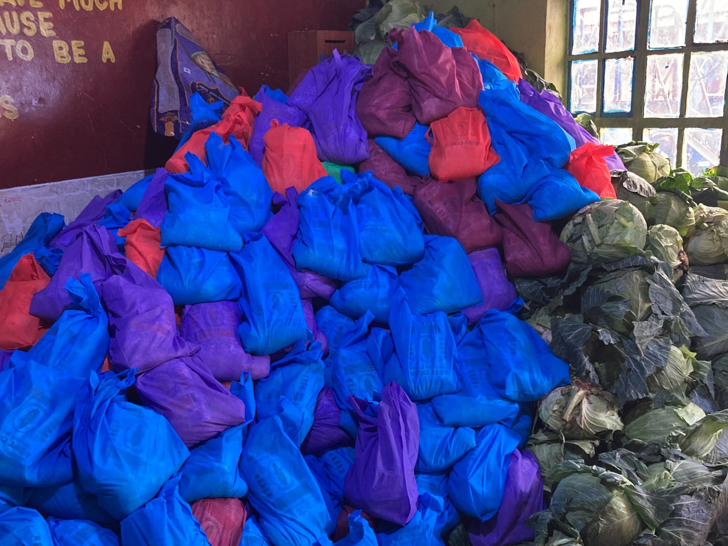 今回の食糧支援では、前回と同様540世帯に食料(各家庭キャベツ1玉・米1kg・トウモロコシ粉2kg)を配布しました。前回から変更したのは、配布の方法です。第1回食糧支援ではキベラスラム内の小学校を会場として対象者に足を運んでもらい、配布を行いました。