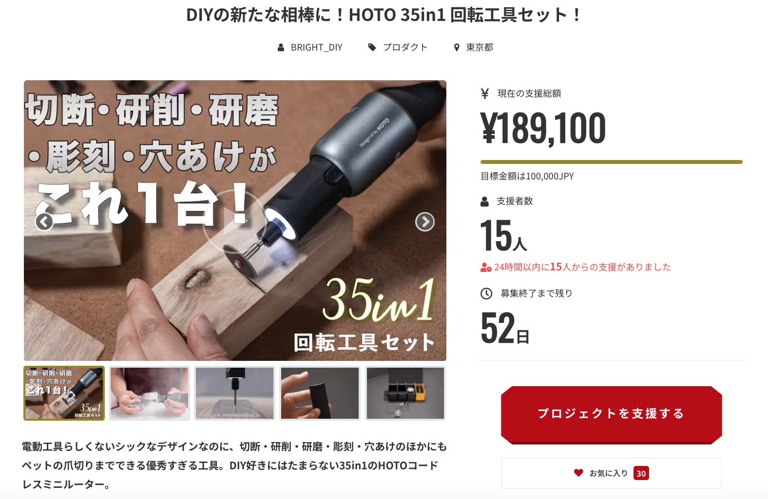 この度は「DIYの新たな相棒に!HOTO 35in1 回転工具セット!」にご支援頂き誠にありがとうございます!