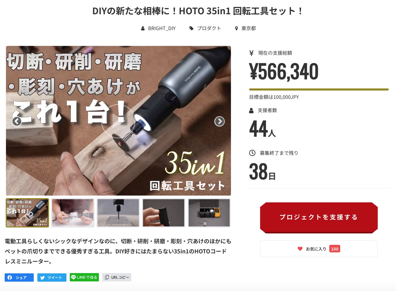 この度は「DIYの新たな相棒に!HOTO 35in1 回転工具セット!」に支援して頂き、ありがとうございます!