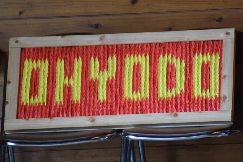 大淀ミニバスOGからもらった折り鶴でつくった「OHYODO(大淀)」ロゴ