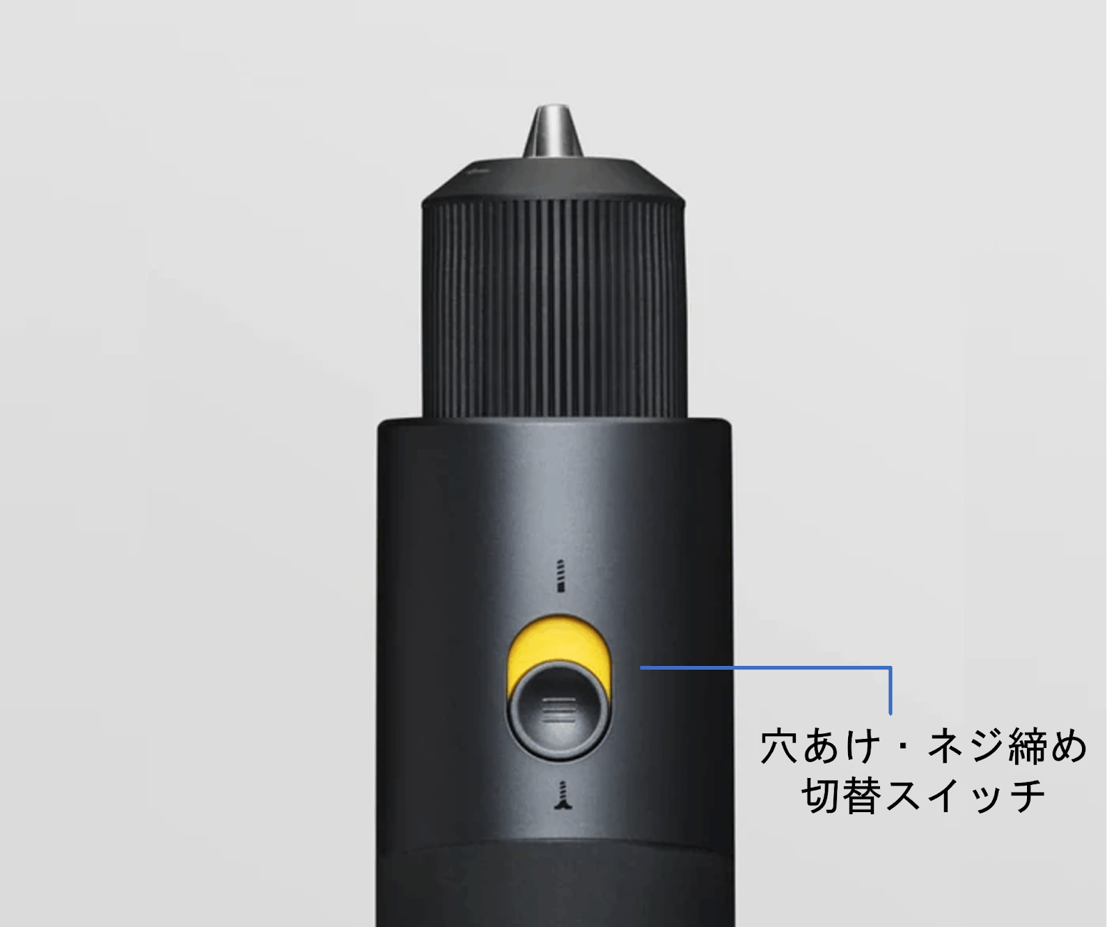 上部のスライドスイッチで穴あけとネジ締めの2つの機能を切り替えることが出来ます。