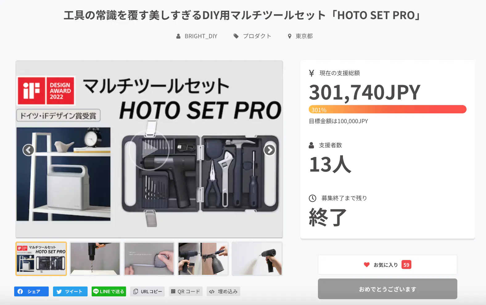 皆様にご満足いただけるリターンをお届けできるよう、全力で取り組んで参りますので引き続き、「工具の常識を覆す美しすぎるDIY用マルチツールセット「HOTO SET PRO」」をよろしくお願い致します。