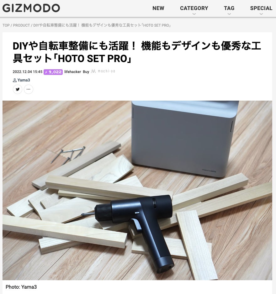 去年、GIZMODOで 「HOTO SET PRO」 を紹介して頂きました。興味がある方、是非下記のリンクからアクセスしてみてください。https://www.gizmodo.jp/2022/12/machi-ya-hotosetpro-review.htmlBrightDIYチームは当プロジェクトをより多くの方へ知って頂きたいと考えております。https://camp-fire.jp/projects/view/650704?utm_campaign=cp_po_share_mypage_projects_showよかったら、FacebookやTwitter等のSNSでのシェア・拡散をお願い致します。どうぞよろしくお願い致します。Brightチーム