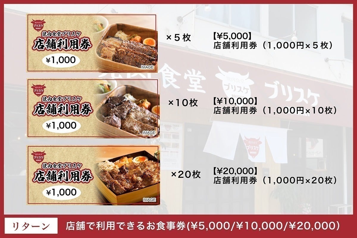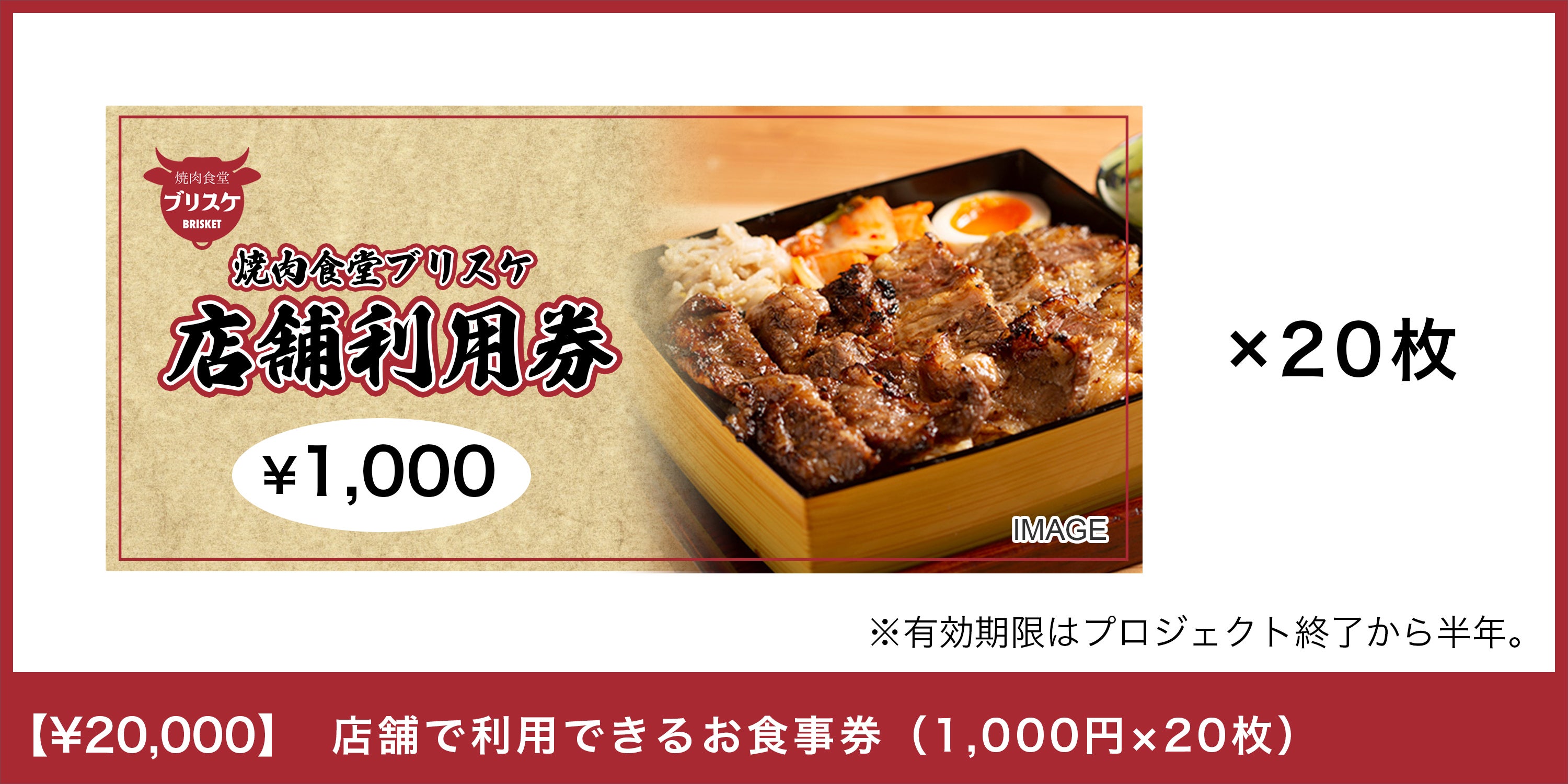 3、焼肉食堂ブリスケ店舗利用券 1,000円x20枚(20,000円)
