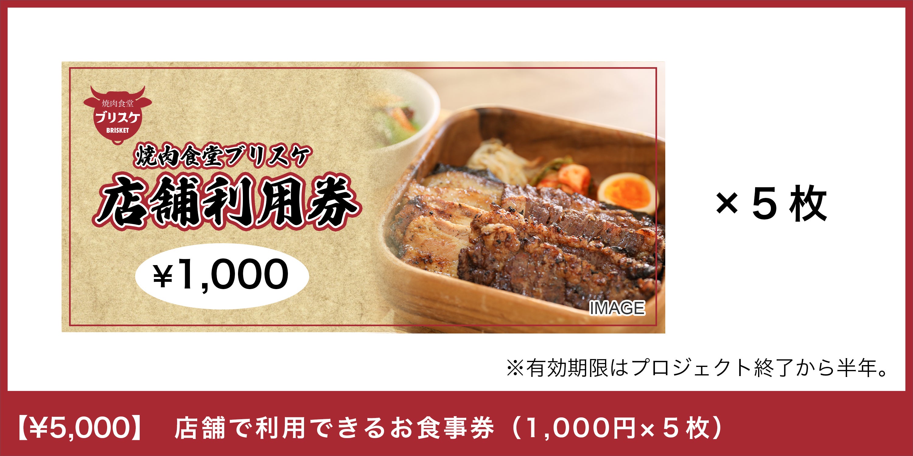 1、焼肉食堂ブリスケ店舗利用券 1,000円x5枚(5,000円)