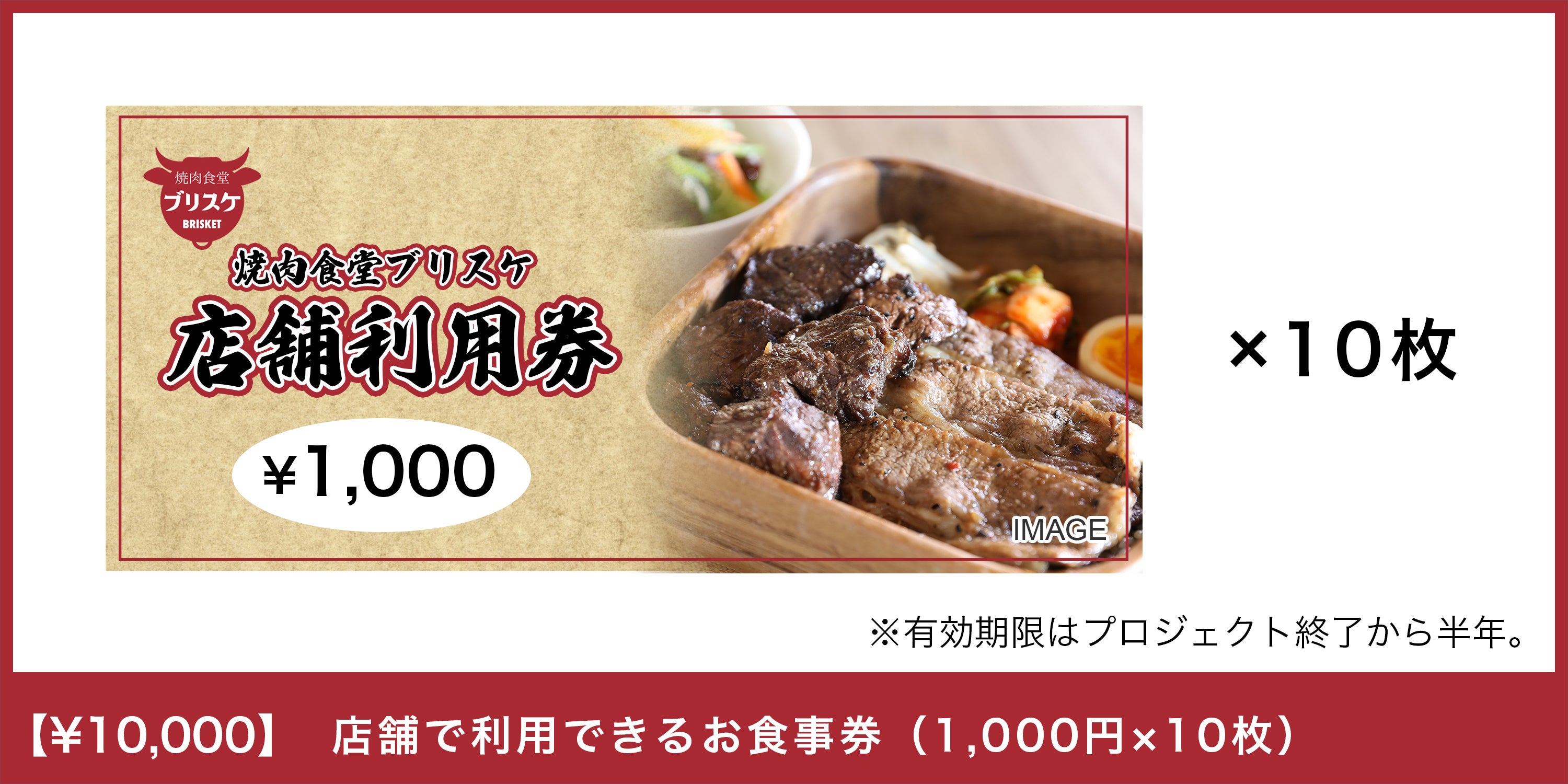 2、焼肉食堂ブリスケ店舗利用券 1,000円x10枚(10,000円)