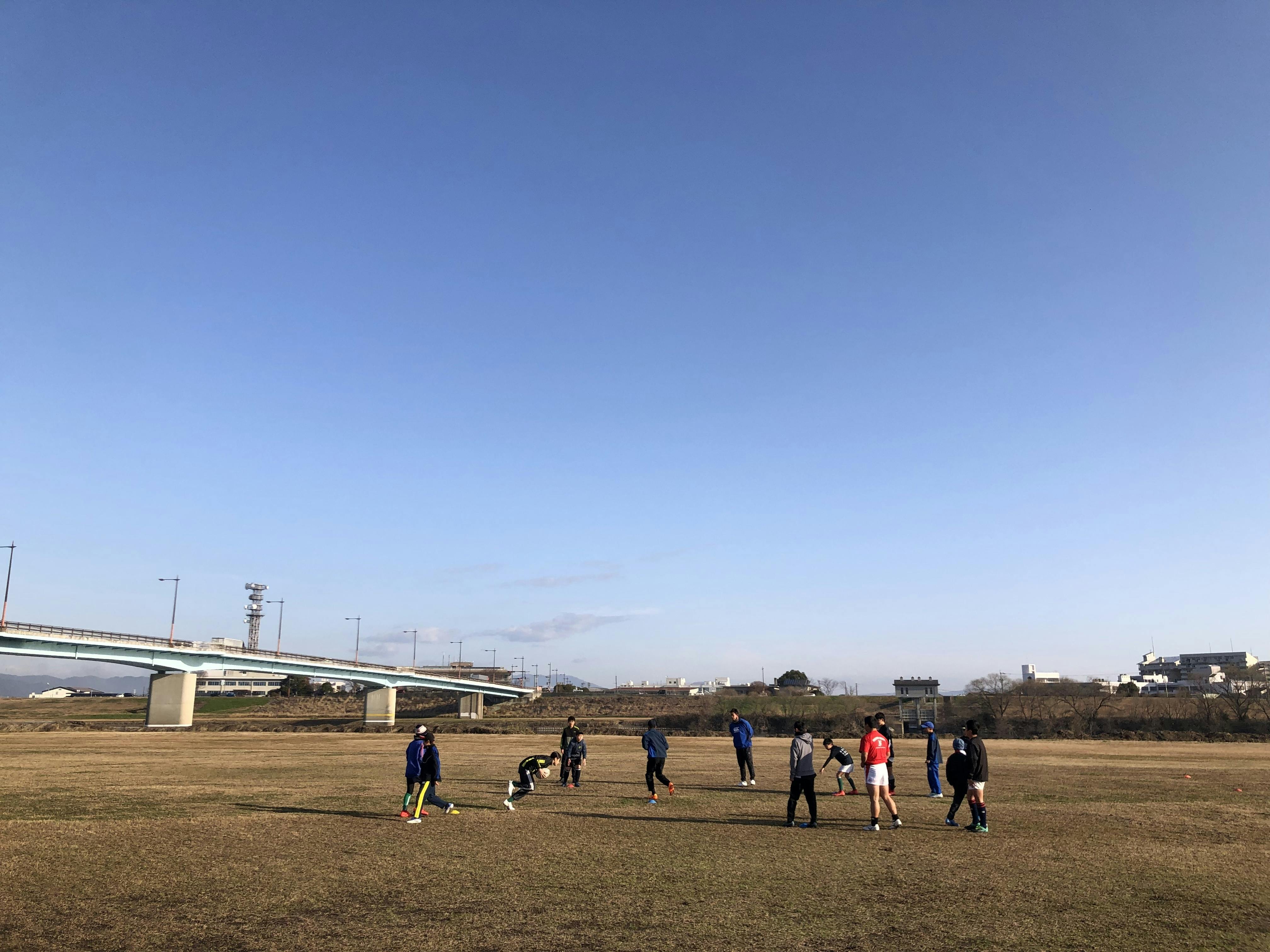 雲ひとつない寒空の下、今週またも久留米筑後川の河川敷で、りんどう6年生子どもたちは、元気に練習をスタートしました。