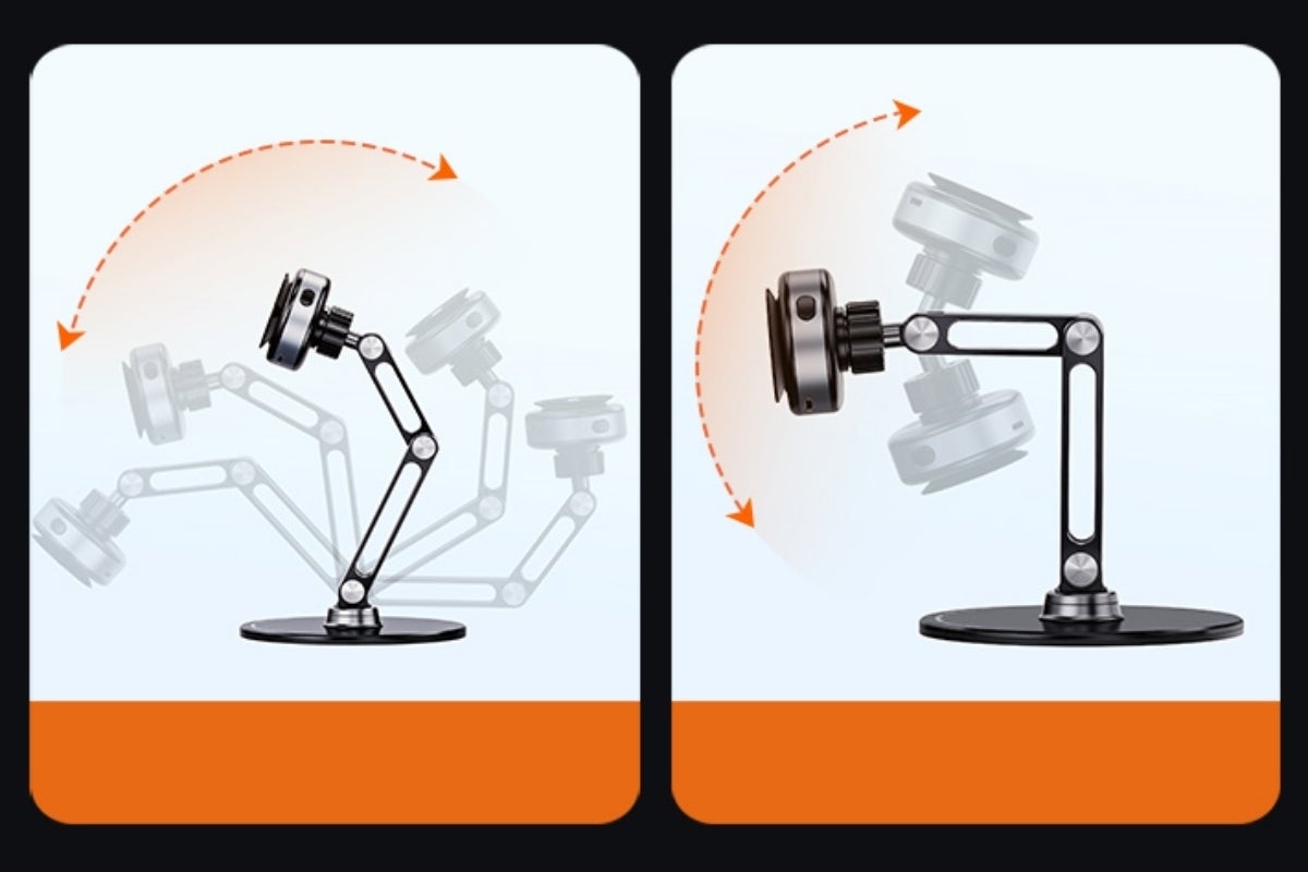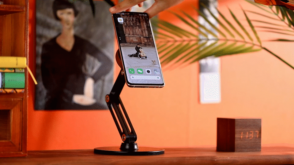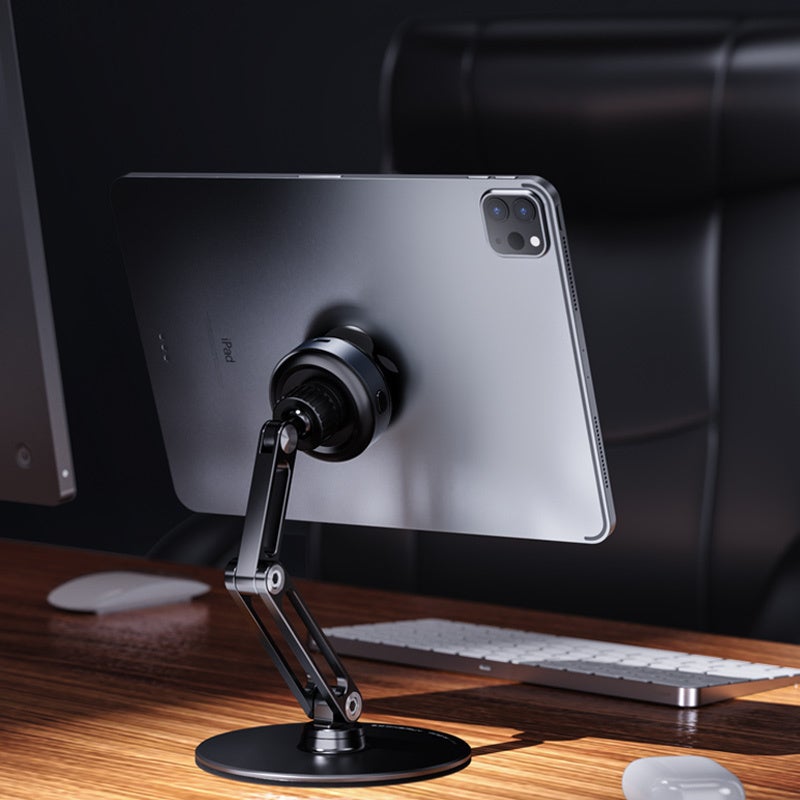 タブレットをスタンドに軽く押し付けるだけでピタッと真空吸着し、360度回転でき、あなたの好みの高さと角度でモニターを視聴できます。