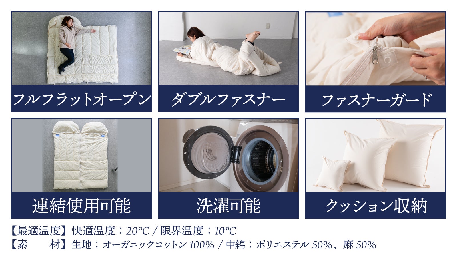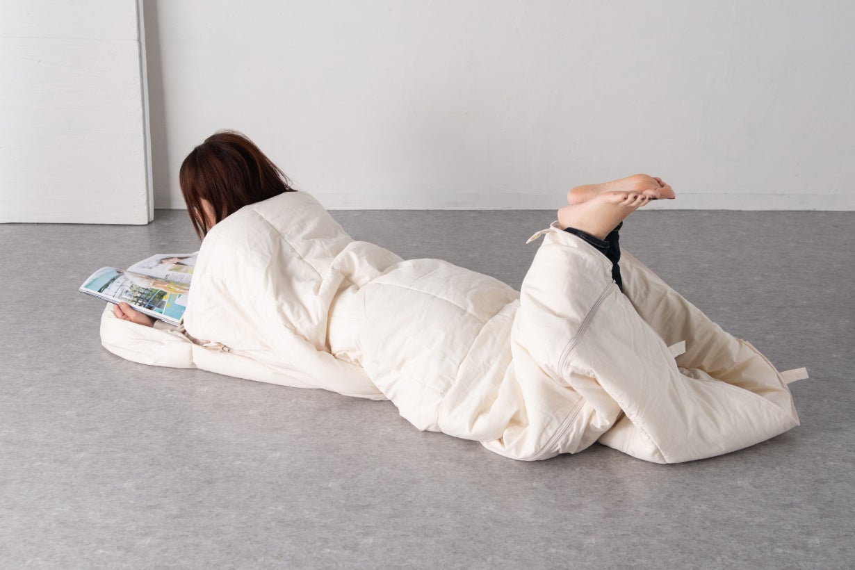 また、肌触りの良い寝袋だからこそ、掛け布団やブランケットとして日常使いすることや、急な来客用としてもオススメです。