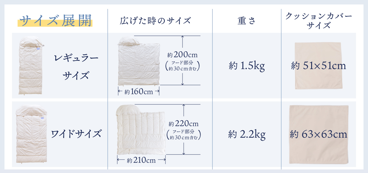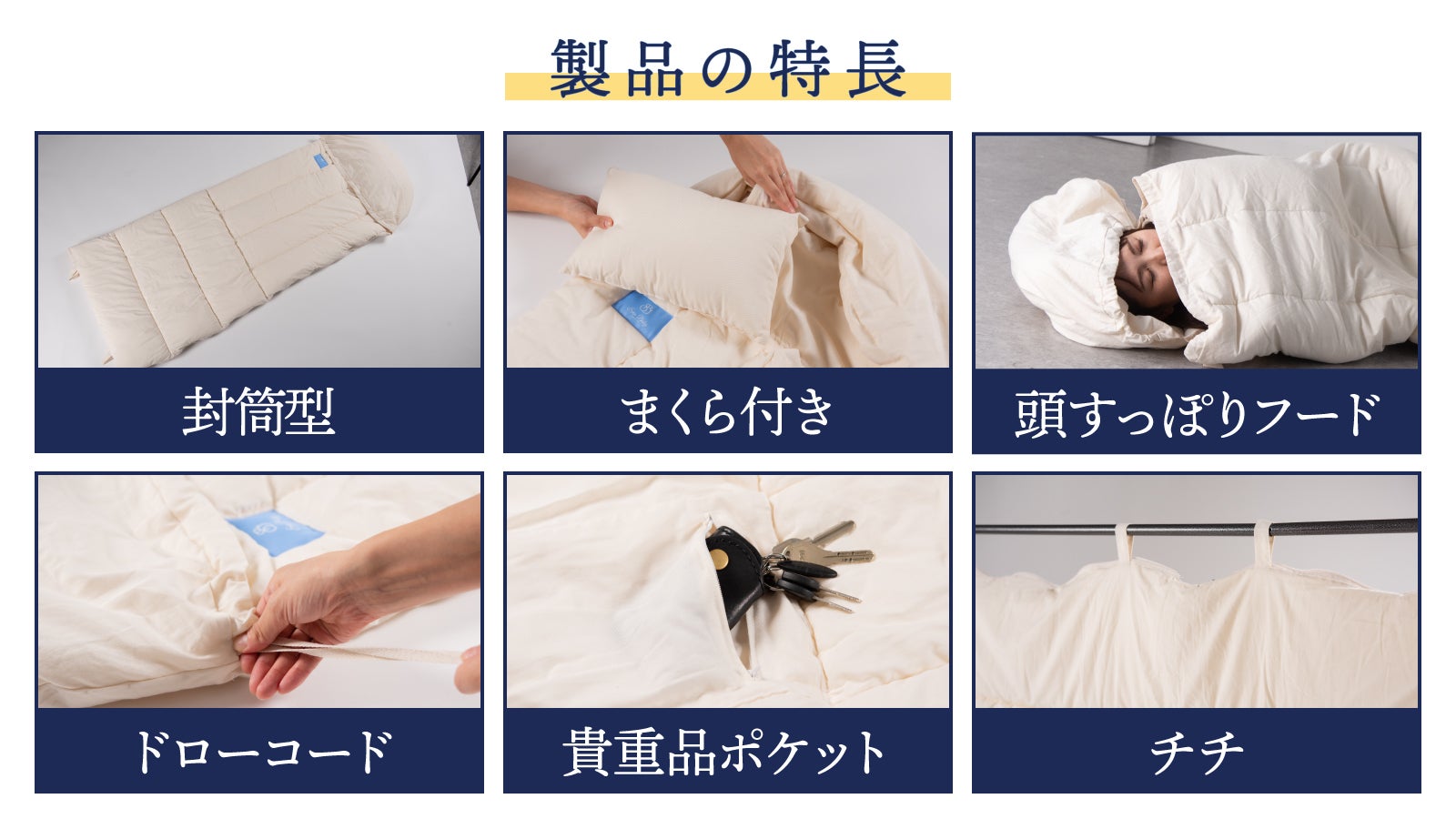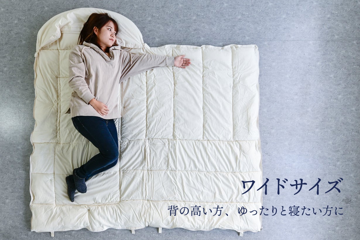 寝袋だからって寝心地を諦めたくない!という想いから、寝具メーカーさんと試行錯誤の末、完成しました。