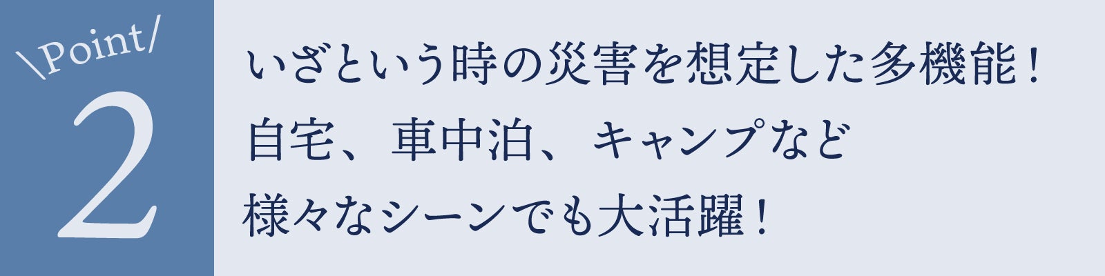 家族人数分ご家庭にあれば、非常時の被災生活はもちろん、普段の生活やアウトドアシーンなどでも役立つアイテムです。