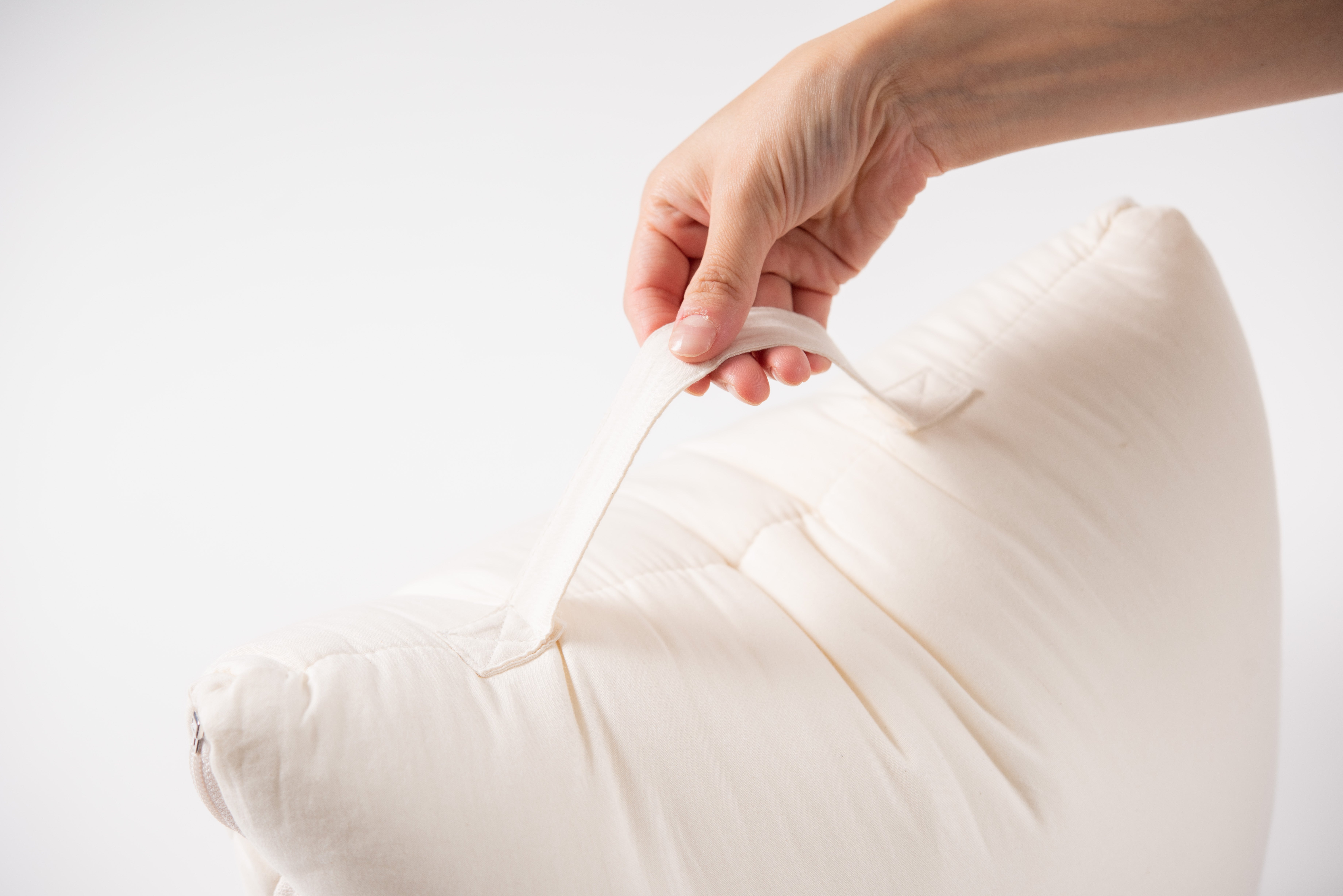 中綿は、通気性が良く、吸水・吸湿性に優れ、汗をかいても肌に張り付かず夏でも快適に過ごす事ができる麻素材、そして弾力性をカバーするポリエステルを使用しています。洗濯可能仕様しています!