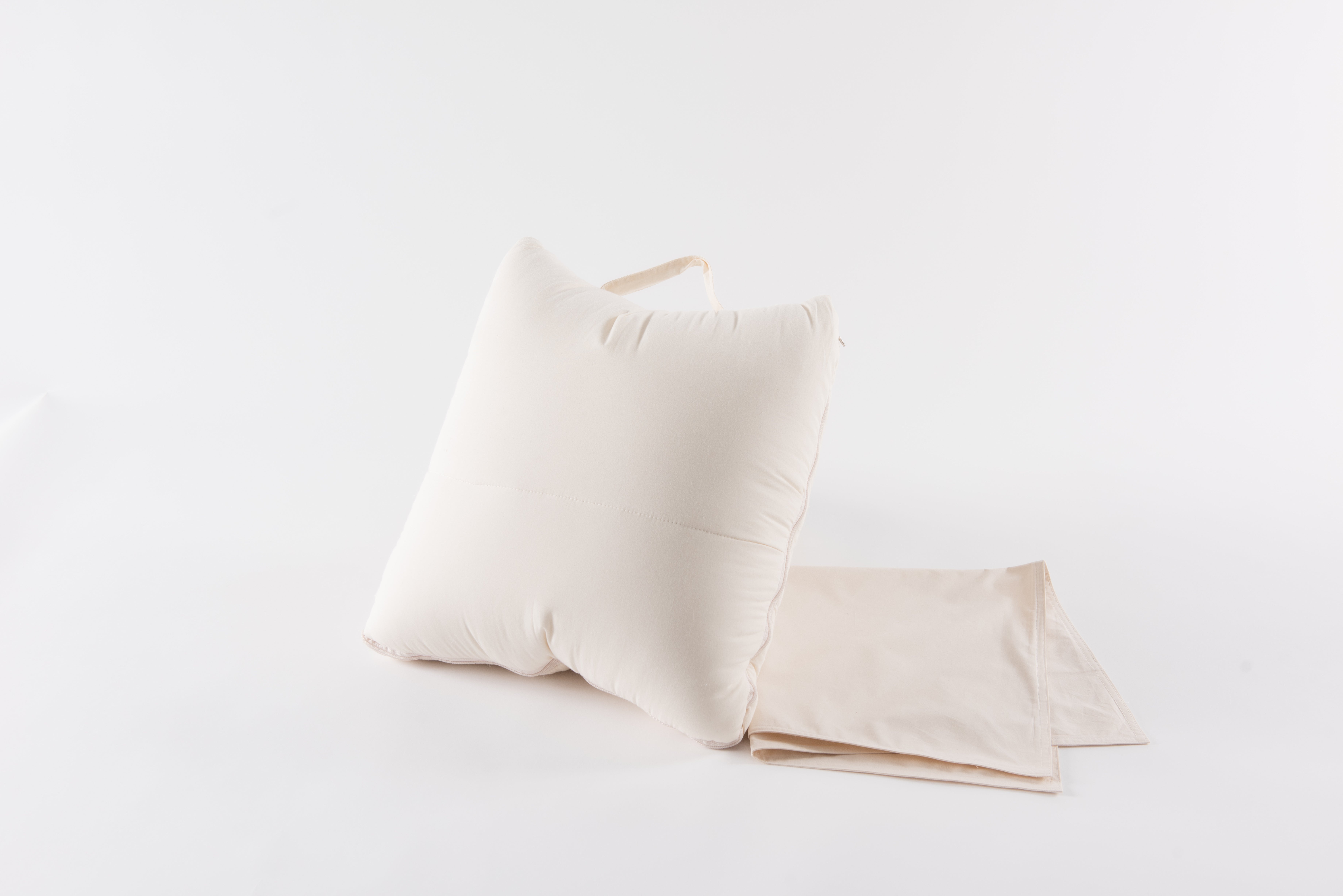 寝袋のサイズに合わせた収納袋は、シンプルでインテリアに馴染みやすいクッションカバーになっているので、クッションとして使用すれば保管場所に困りません。クッションカバーはインテリアに合わせて、素材の違う2種類からお選びいただけます。市販のカバーも適用サイズ!