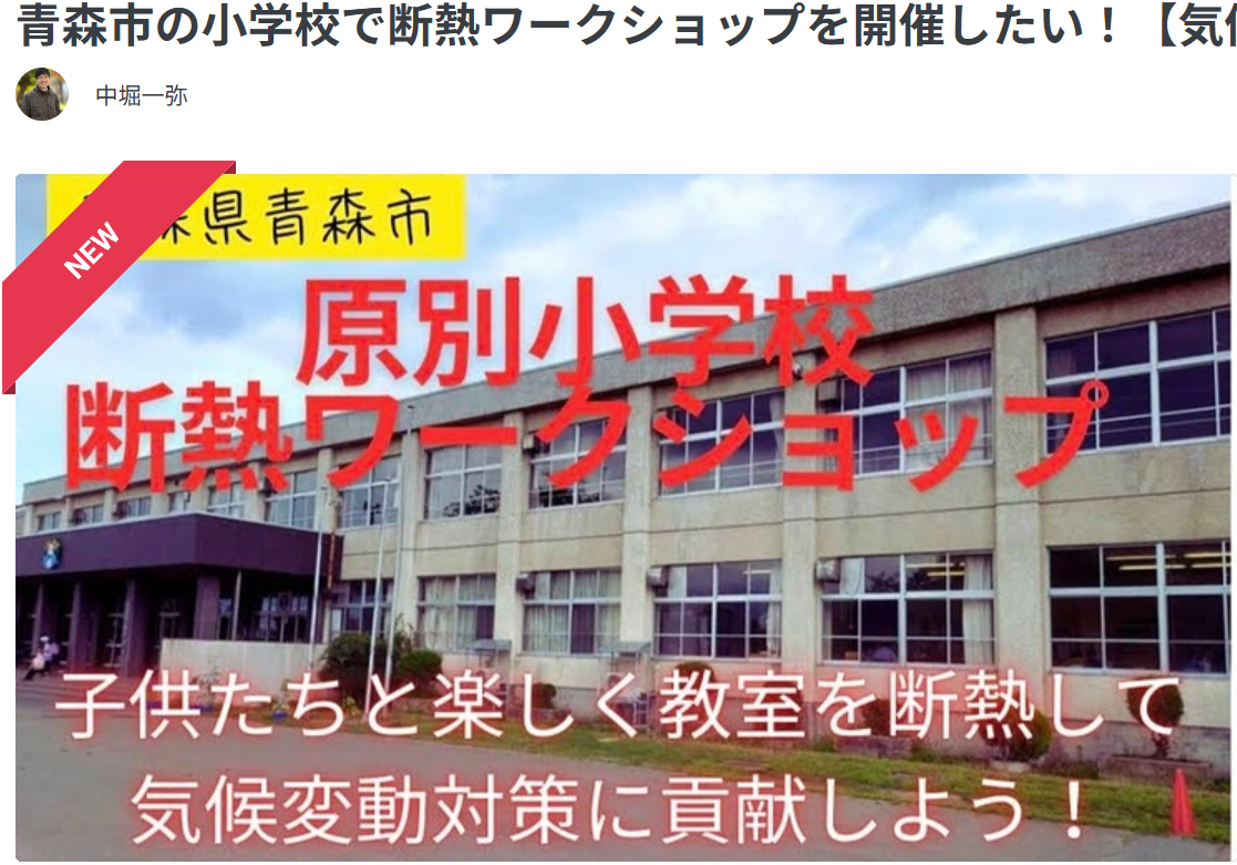青森市の原別小学校での断熱ワークショップ、クラファンが始まっています!