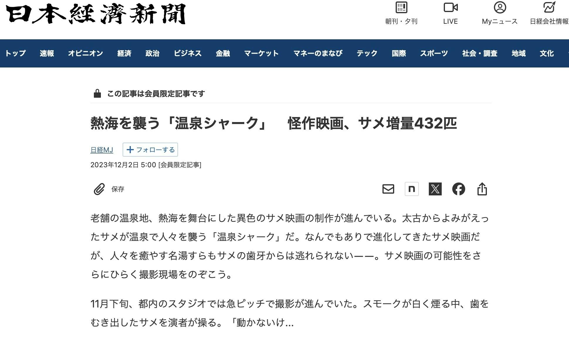 映画『温泉シャーク』プロデューサーの永田です。
