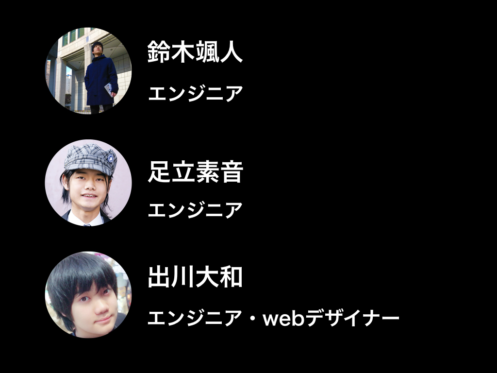 まず、チームビルディングを行いました。足立・出川は未踏ジュニアの採択メンバー。