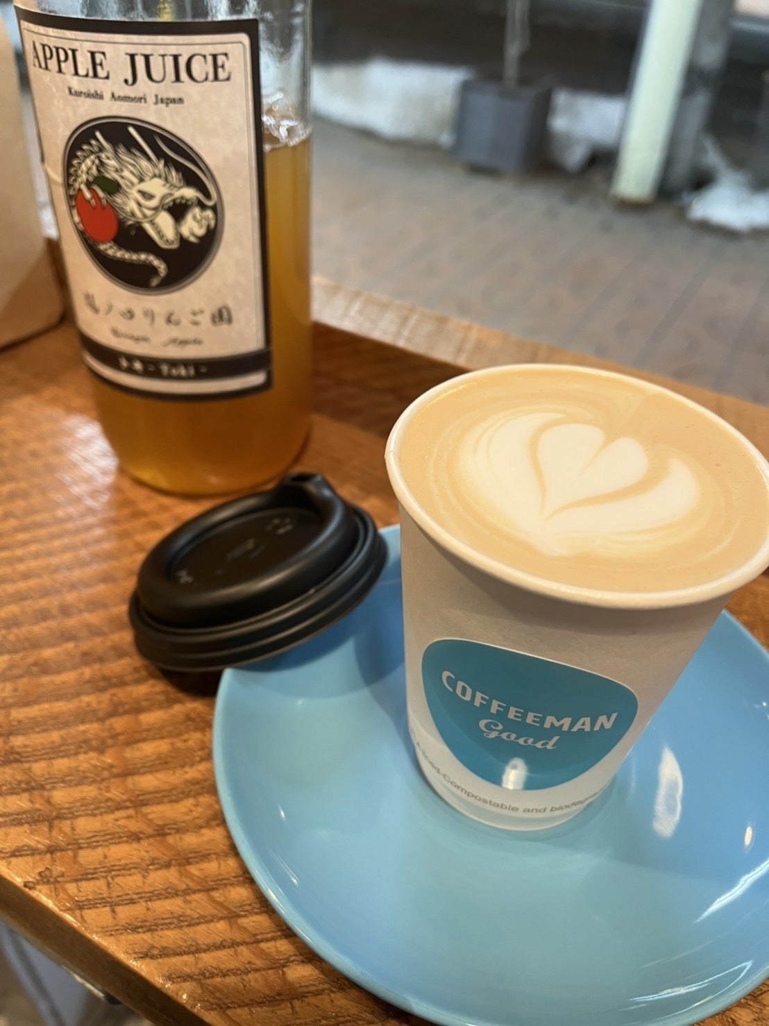 青森市のカフェ、COFFEEMAN goodさんでは龍ノ口りんご園のジュースを使用したコーヒードリンクを提供していただいております。