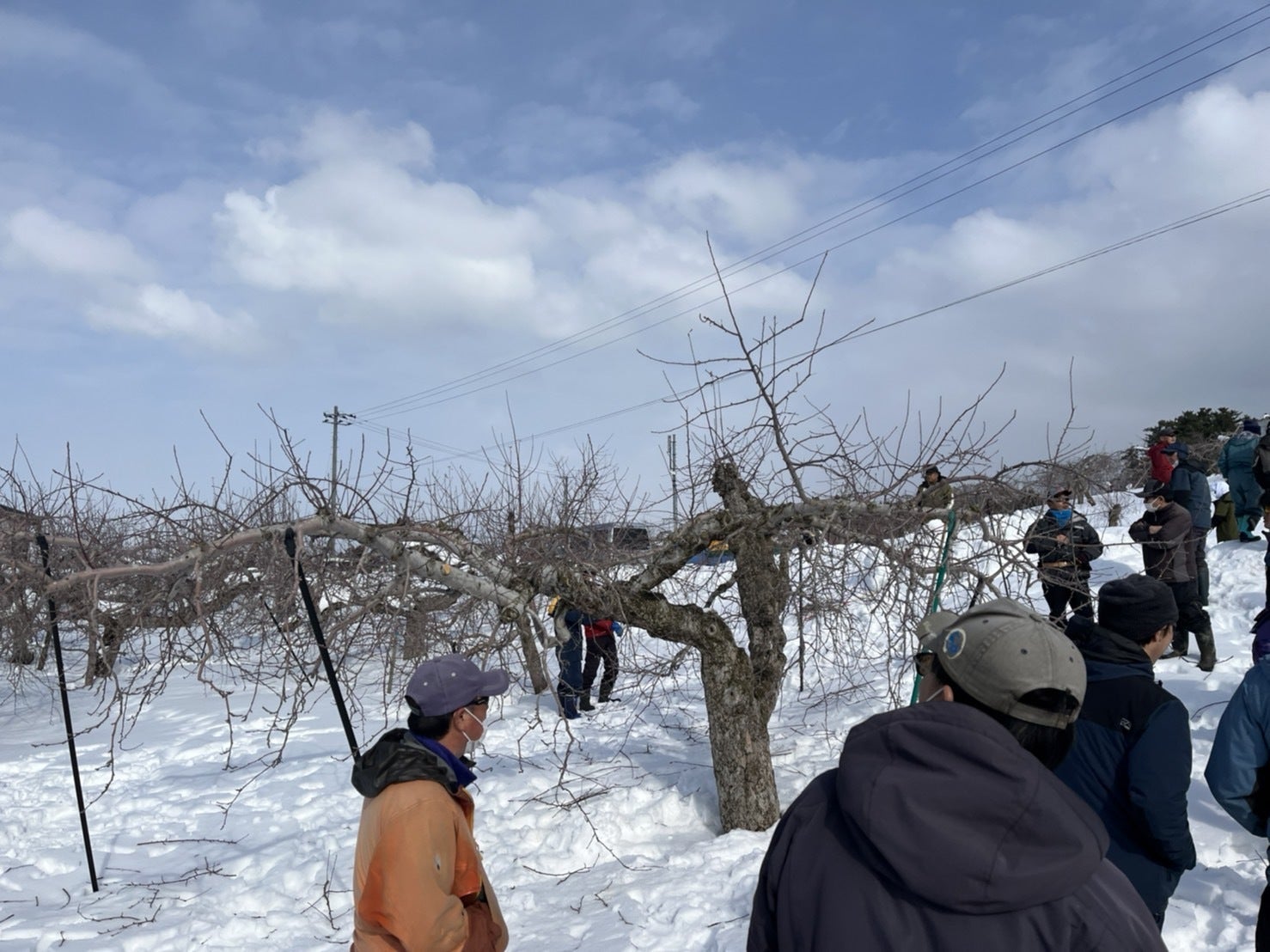 1つのルールに対して、畑の条件(平地か斜面か、雪の多さ、日光の当たり方など…)やりんご作りの考え方(作業性を優先するのか、量を優先するのか、あるいは観賞用として育てるのか、など…)によって剪定の方法は大きく変わります。隣の地区に行くだけで違った“学派”があるのが面白い点で、青森県内では各地で頻繁に剪定の勉強会が行われています。