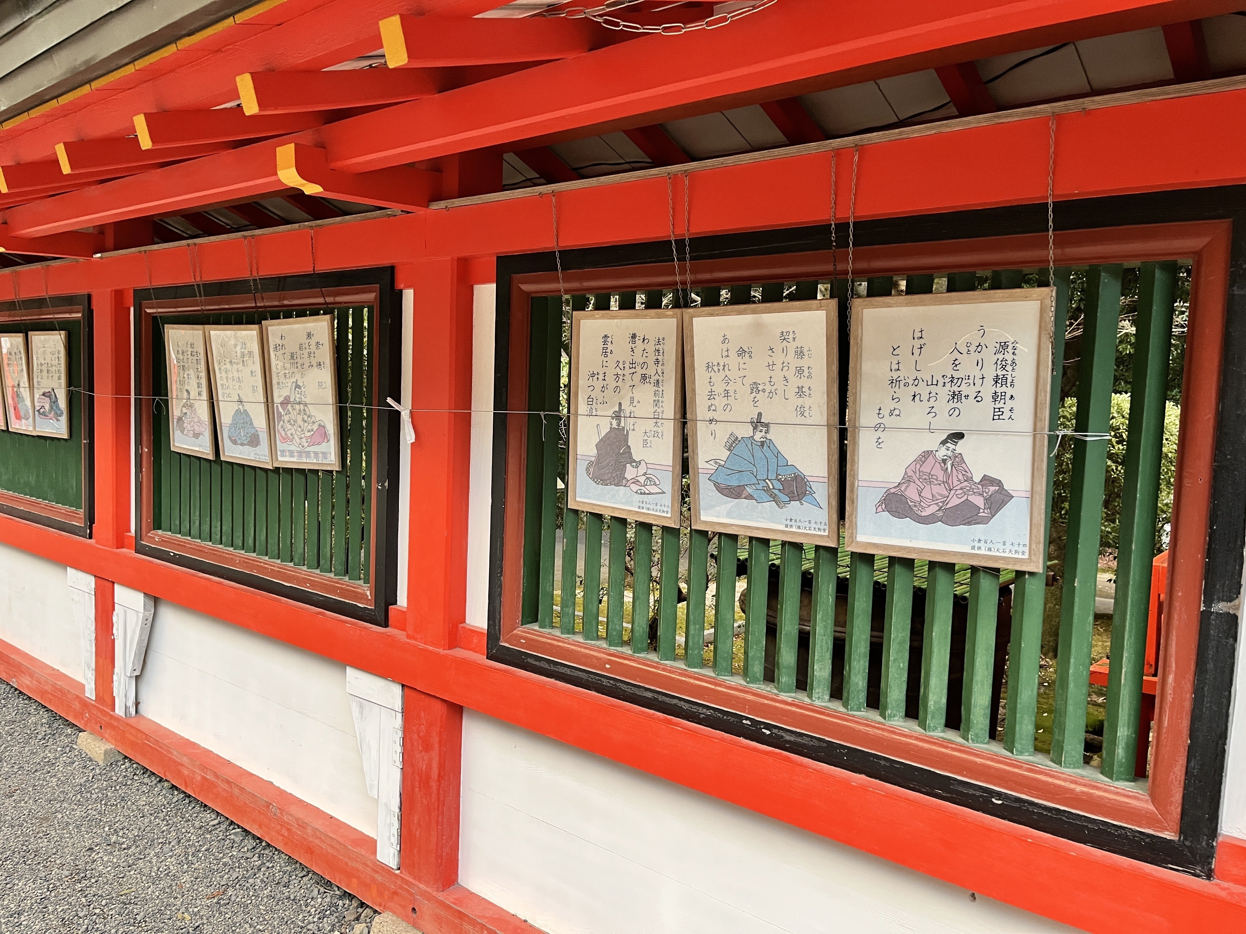 (近江神宮の境内に飾られた百人一首)