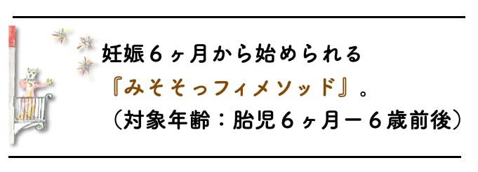 みそそっフィメソッドでは、胎児から6歳までに音感の基礎を習得して、楽器を始めた時には楽器の習得に集中する事ができる様にメソッドを組み立てています。