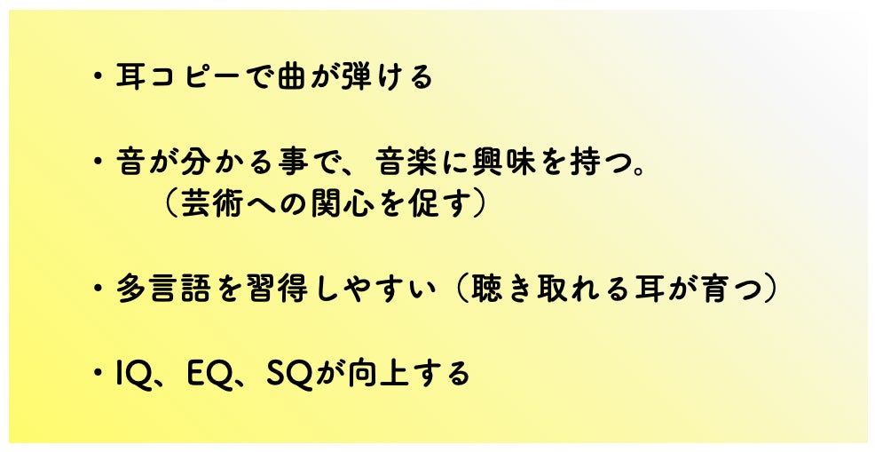 そういう思いから、この「みそそっフィメソッド」は生まれました。そして絶対音感習得以外にも、IQ向上などの素晴らしいメリットがいっぱいなんです!