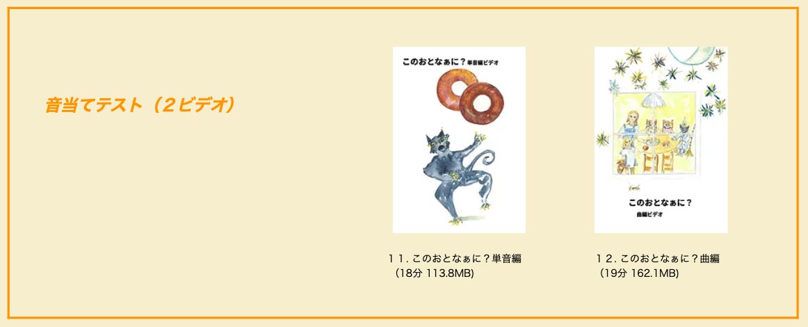 1.「このおと なぁに」単音編テストビデオ(18分 113.8MB)
