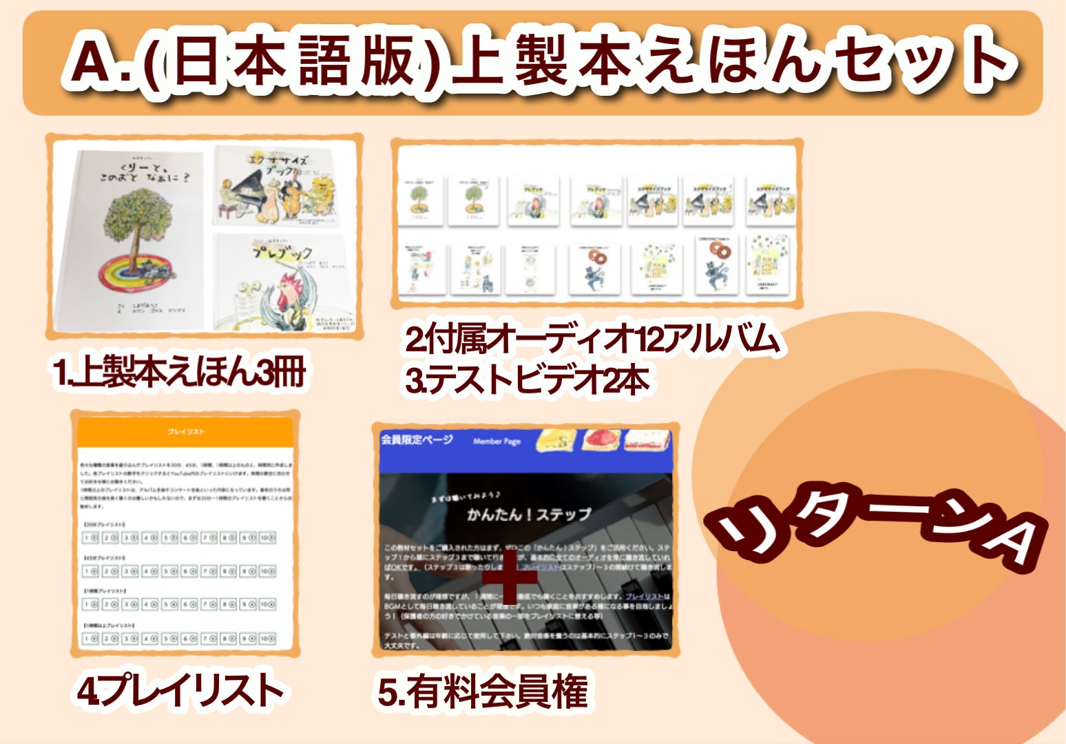 A: リターンB.(日本語版)デジタルえほん3冊セットのみ購入可能です。その他の発送が必要なリターンは国内のみに限らせていただきます。Only the return B is available for purchase. Unfortunaly other returns do not ship internationally.