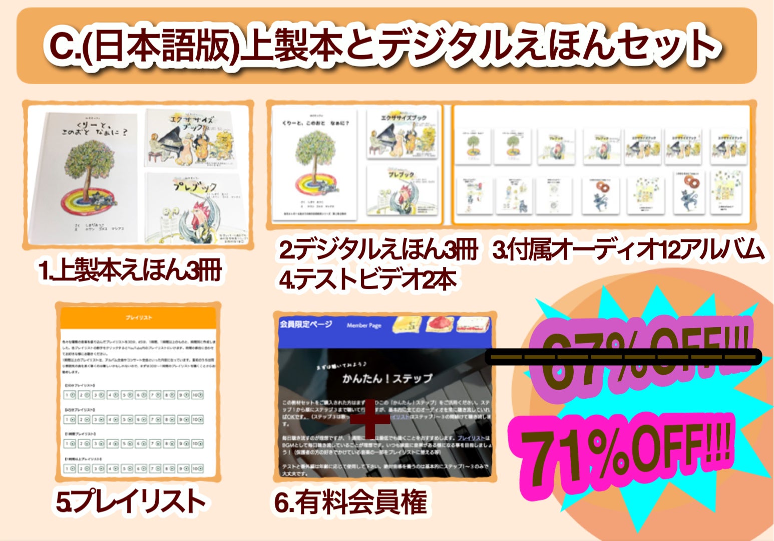 (日本語版)上製本とデジタルえほん3冊セット+英語版又はスペイン語版デジタル本えほん3冊セット(販売予定価格:日本語版上製本とデジタル本67,000円、デジタルえほん英語版又はスペイン語版各40,000円でトータル10,7000円相当)
