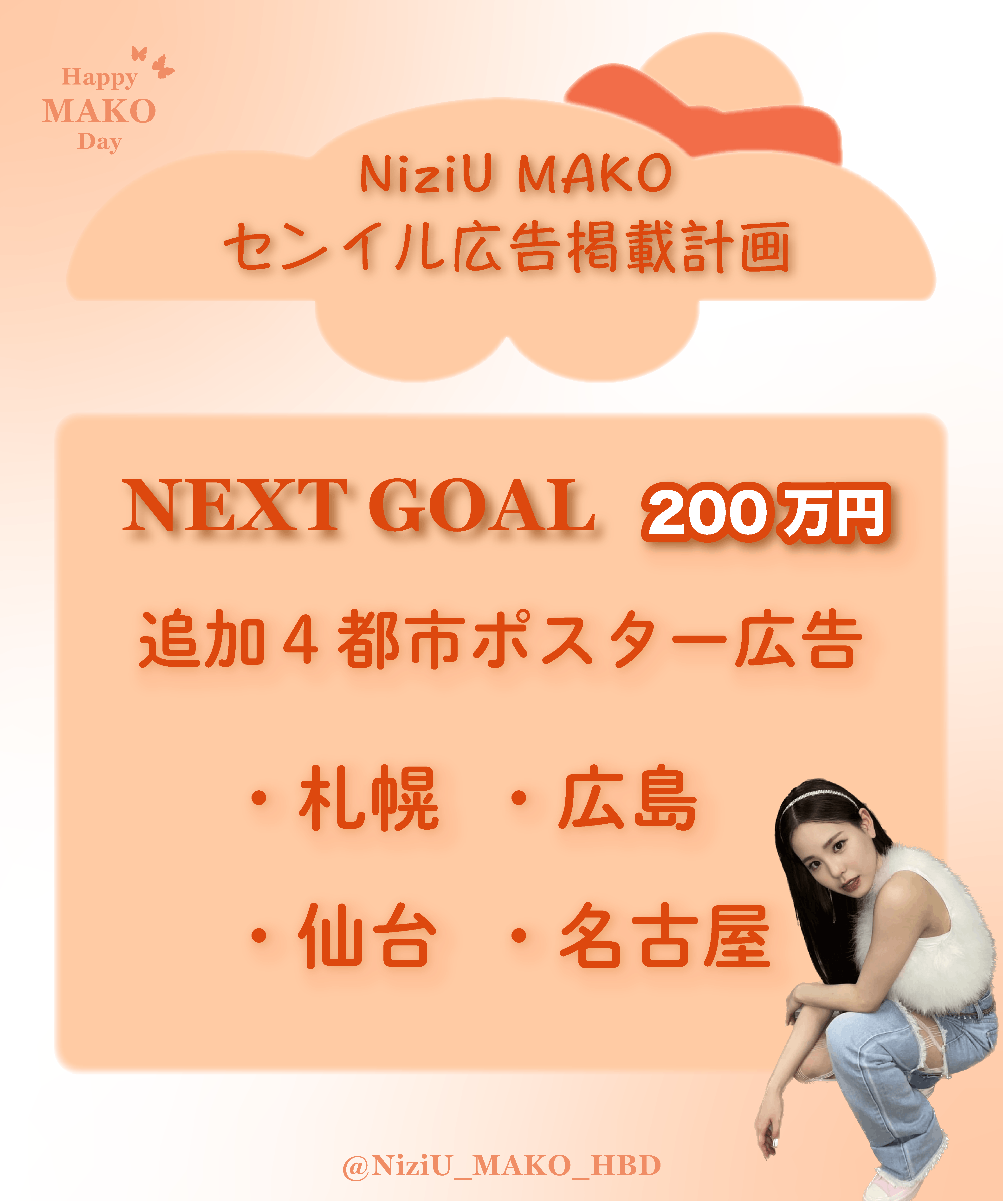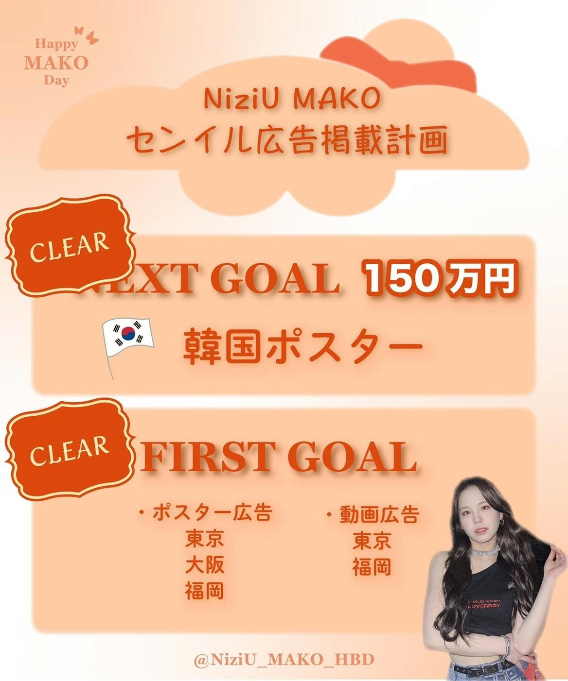 昨年8月、単独アリーナツアー、11月には2大ドームツアーを大成功させ、さらに3年連続となる紅白出場を果たしたNiziU。そのグループのリーダーのマコちゃんが4月4日に22歳の誕生日を迎えます。「センイル広告」という方法で盛大にお祝いしたく、このプロジェクトを始めさせていただきました!