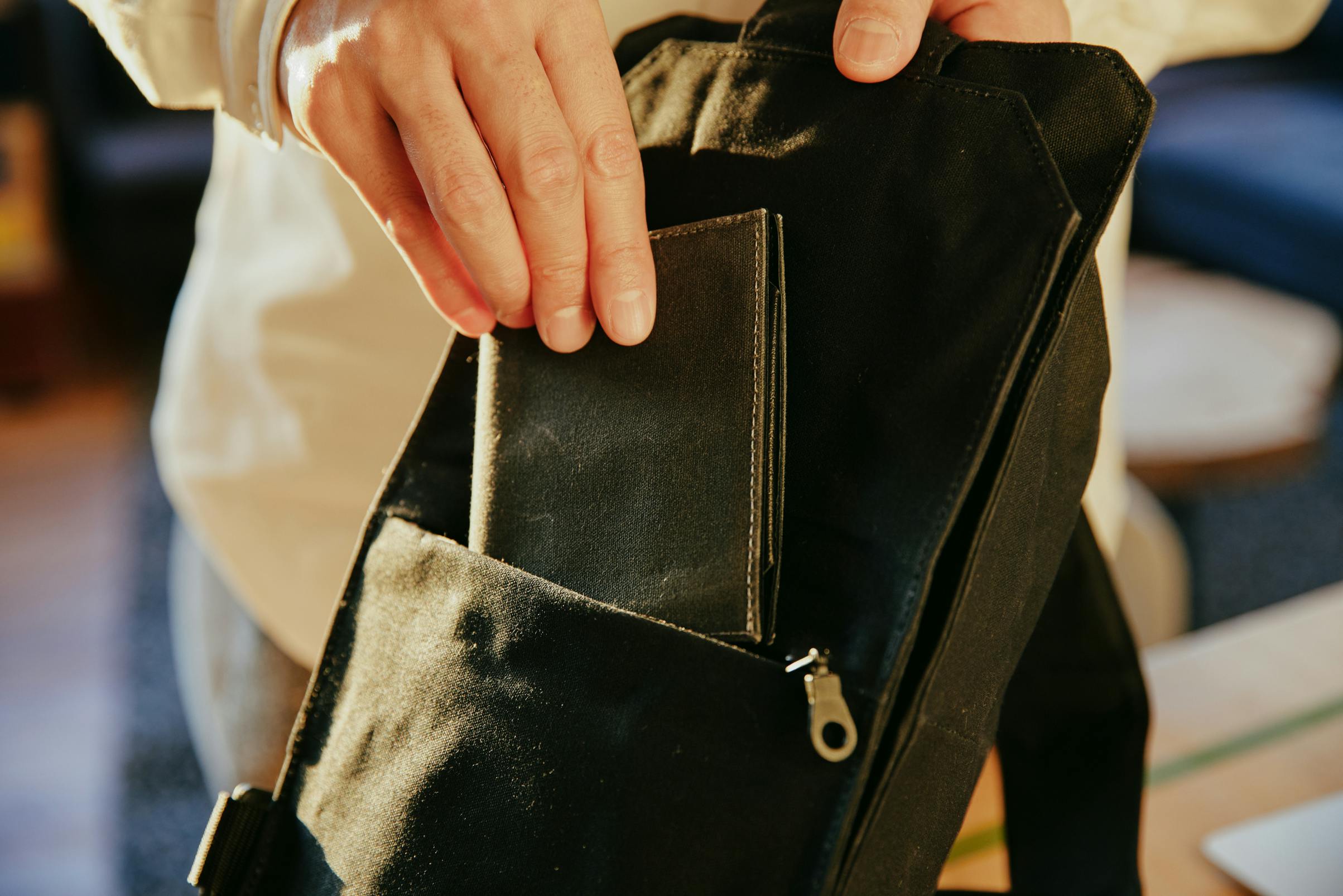 背負っている間、小物ポケットと開口部のファスナーは背中の後ろに隠れる設計なのも、防犯面で安心できるポイント。人混みの中、知らずのうちに盗難されてしまうリスクを軽減します。