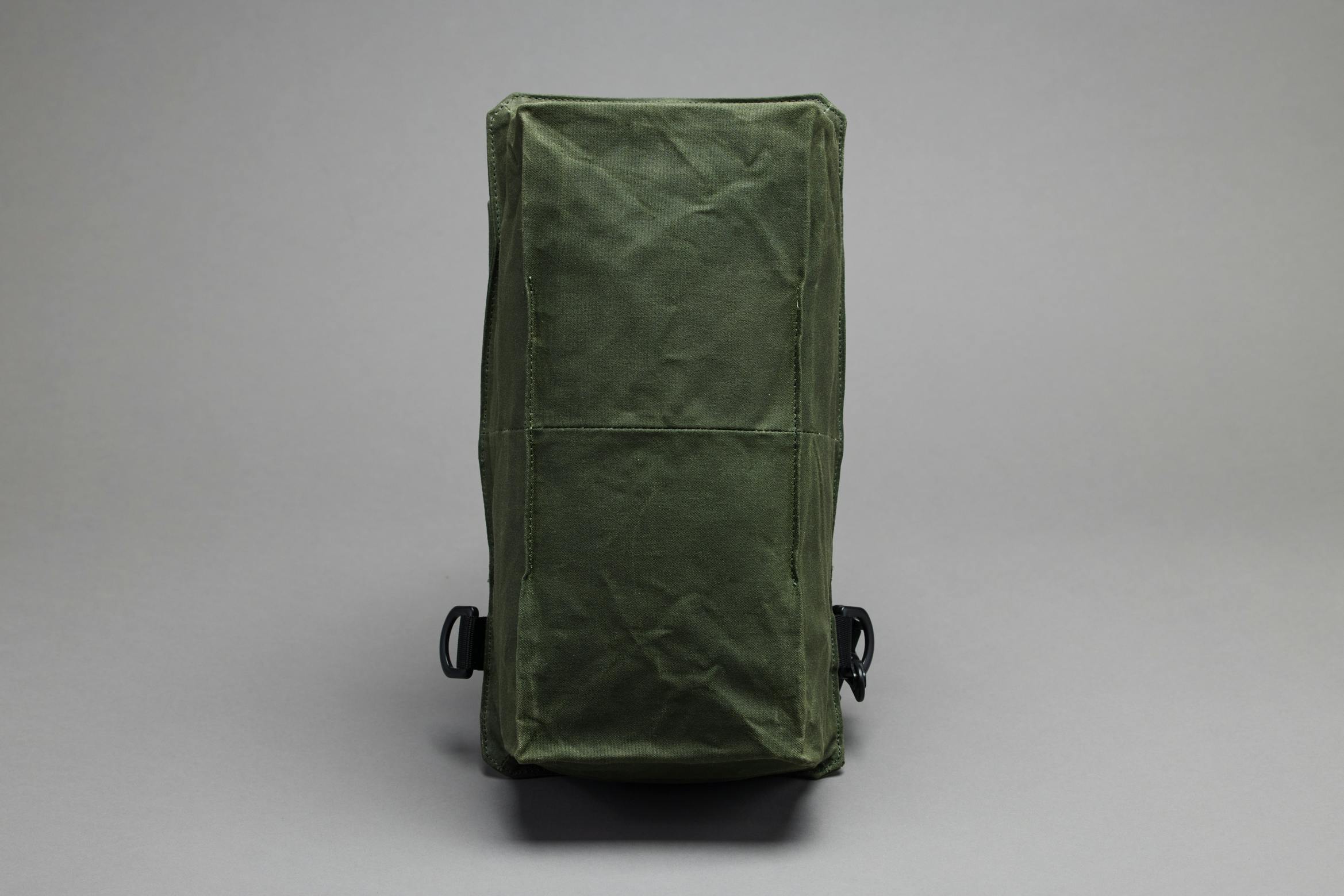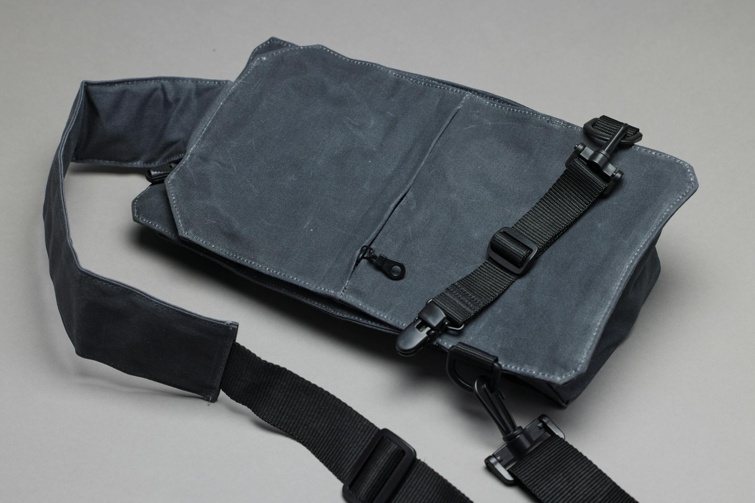 外側には撥水性があるパラフィン帆布、裏地には耐水素材のターポリンが使われているので、ガジェットや本を入れてもOK。