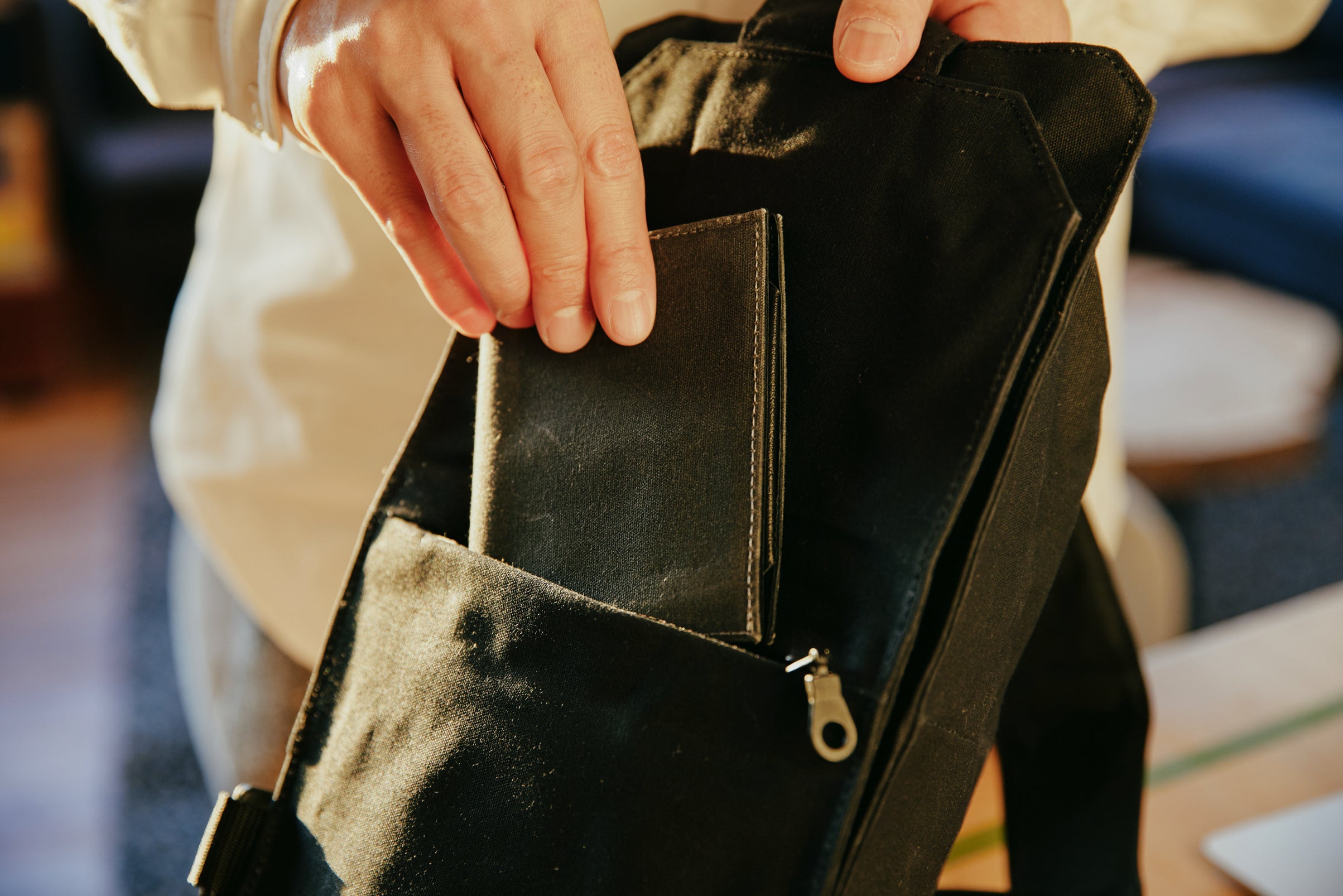 背負っている間、小物ポケットと開口部のファスナーは背中の後ろに隠れる設計なのも、防犯面で安心できるポイント。人混みの中、知らずのうちに盗難されてしまうリスクを軽減します。