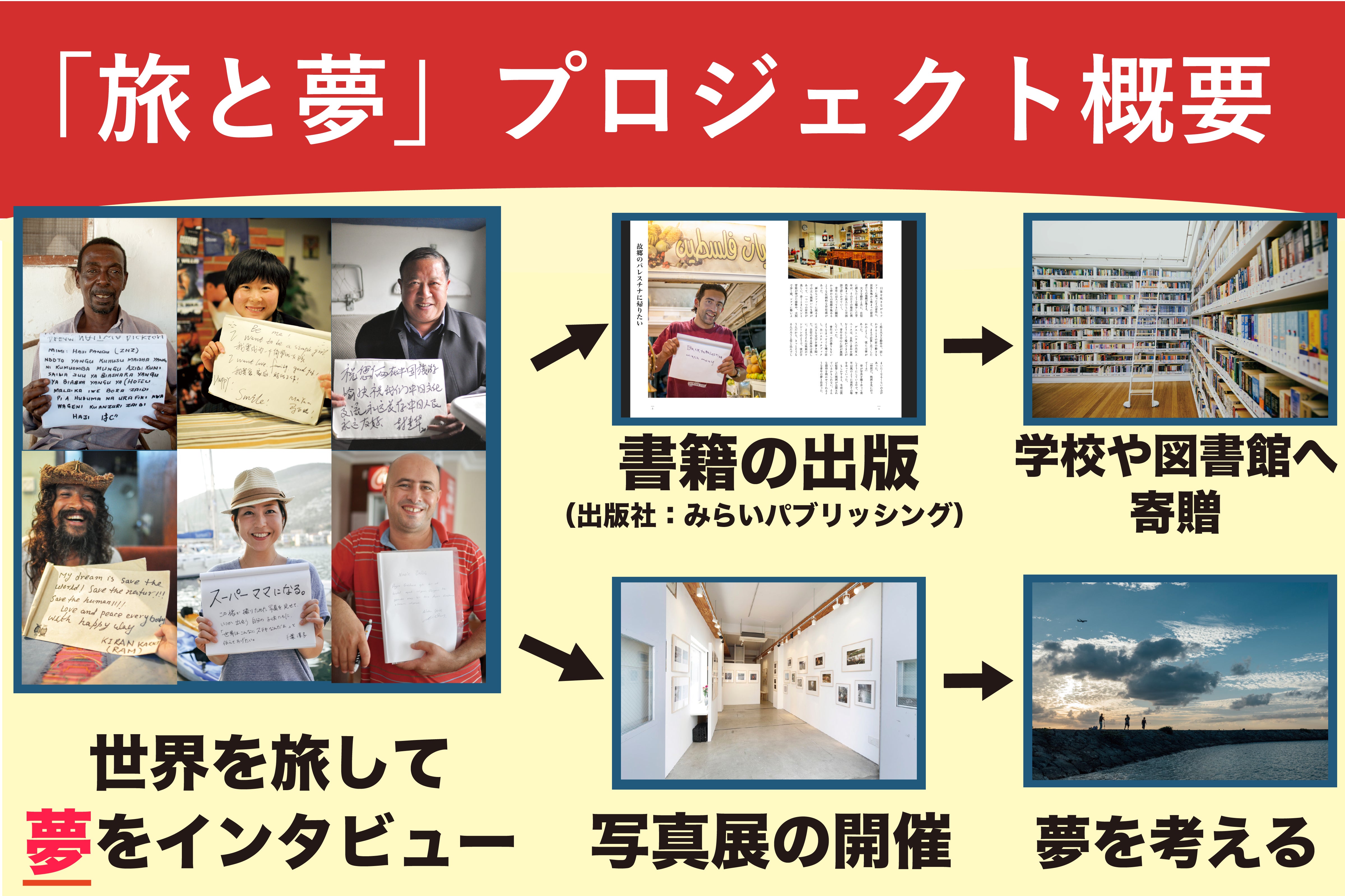 このプロジェクトでは、「旅と夢」をテーマとした書籍を出版し、その本を学校や図書館に寄贈します。