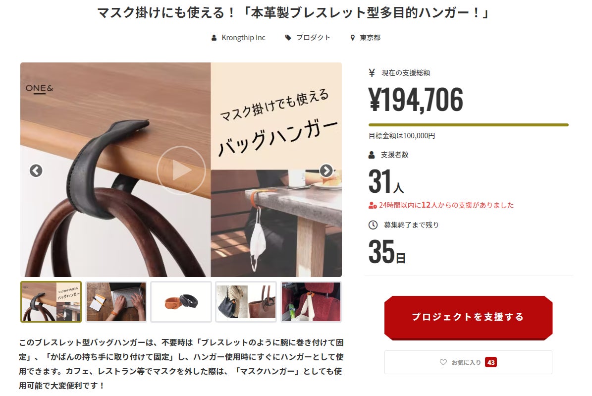 この度「ブレスレット型バッグハンガー」のプロジェクト目標金額を突破いたしました!